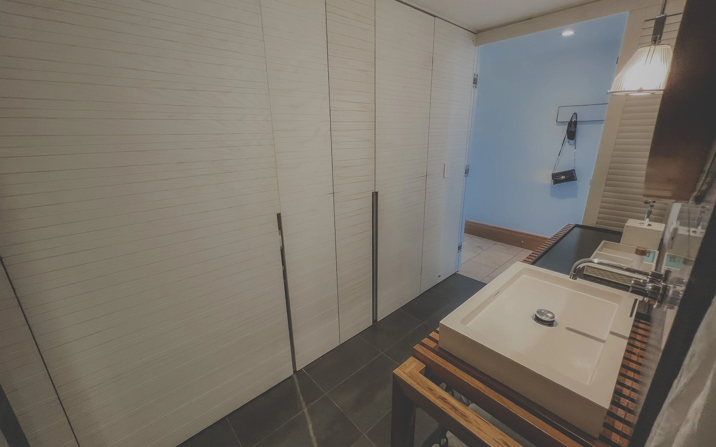 The resort uses premium Maile bath products, a local Hawaiian brand known for its invigorating koke'e (greenery) and mango scents. The vanity is a floating teak slat design that provides plenty of room for two people. While some find the open-concept shower a bit unconventional, it is highly functional, with excellent water pressure and a separate water closet for privacy.