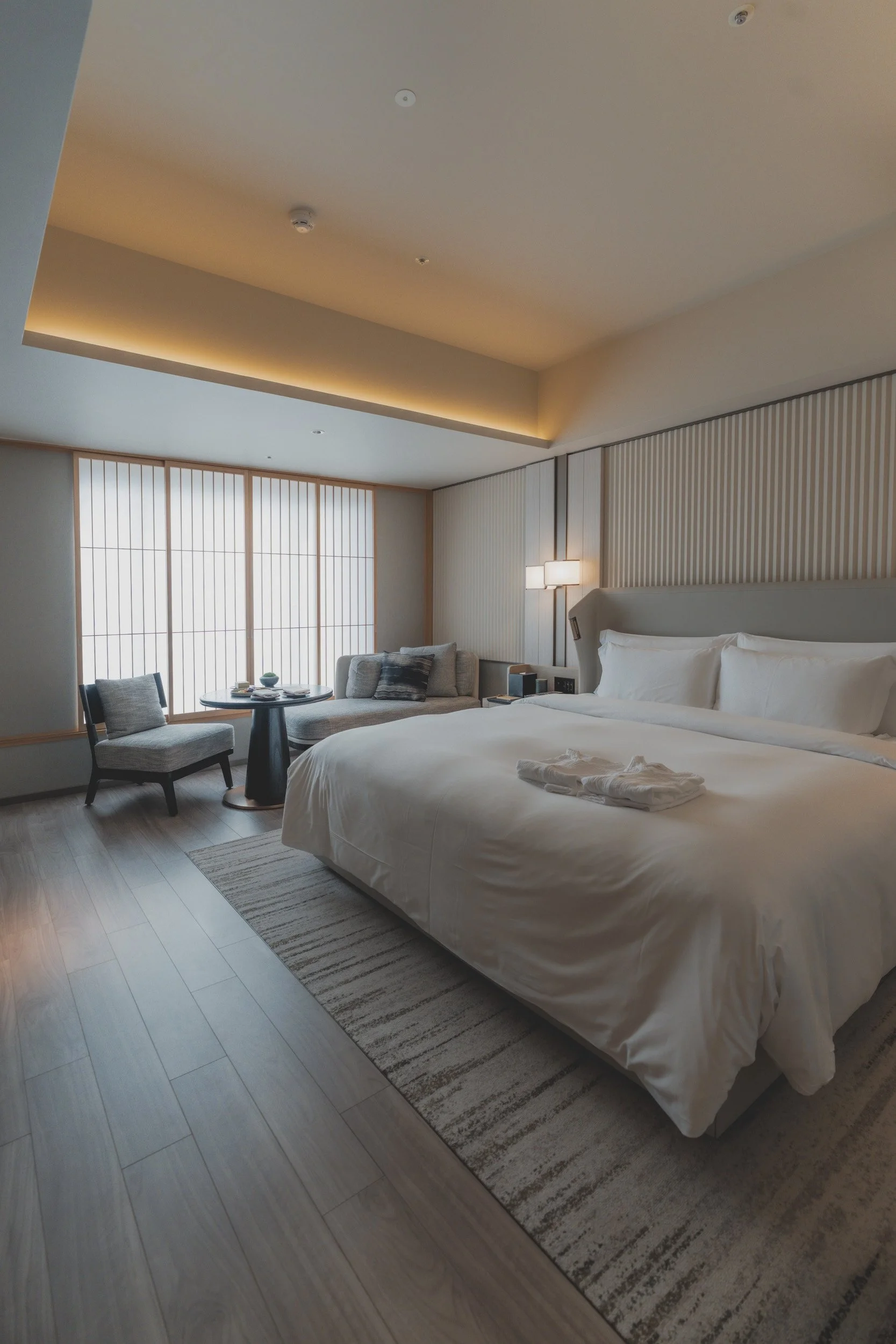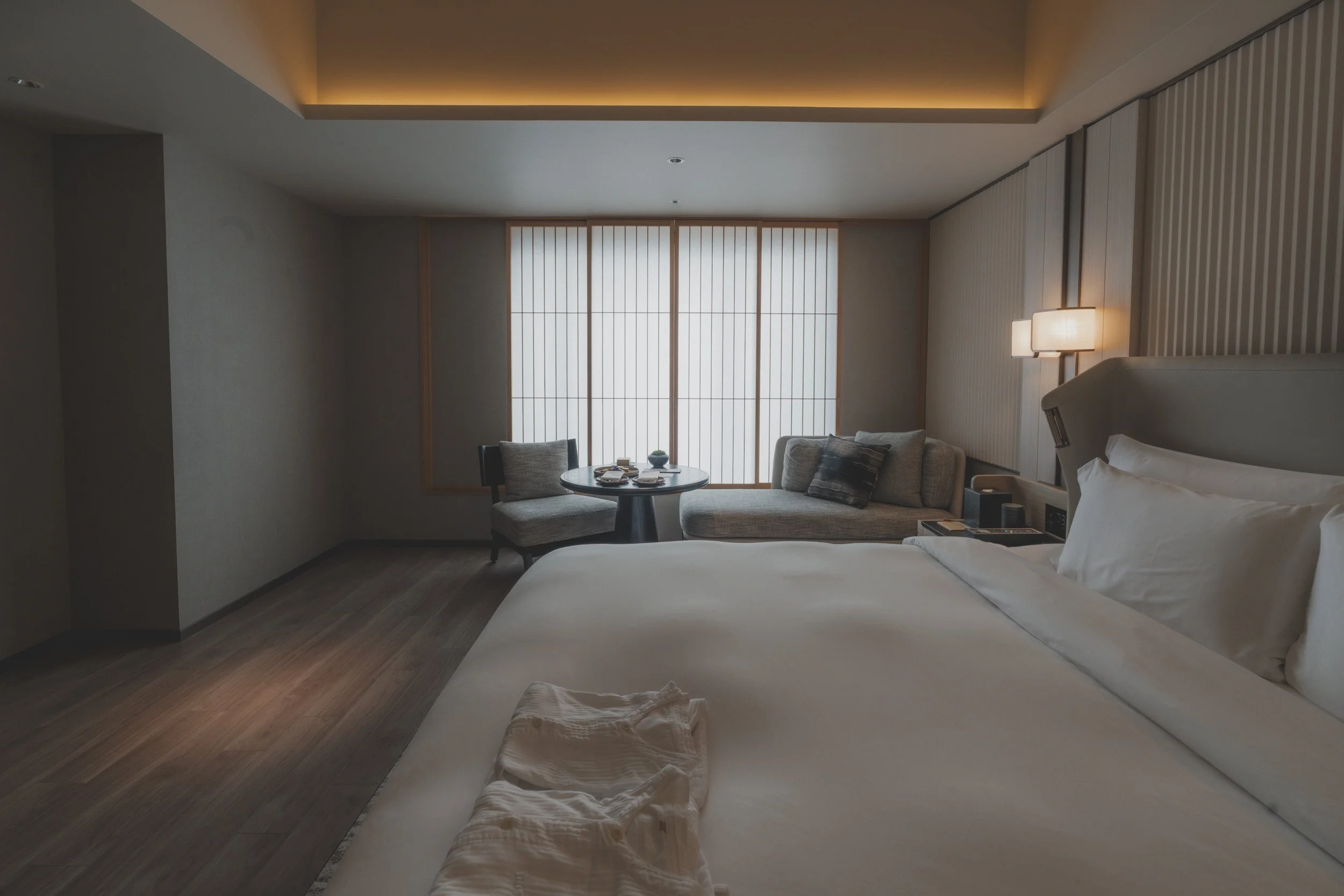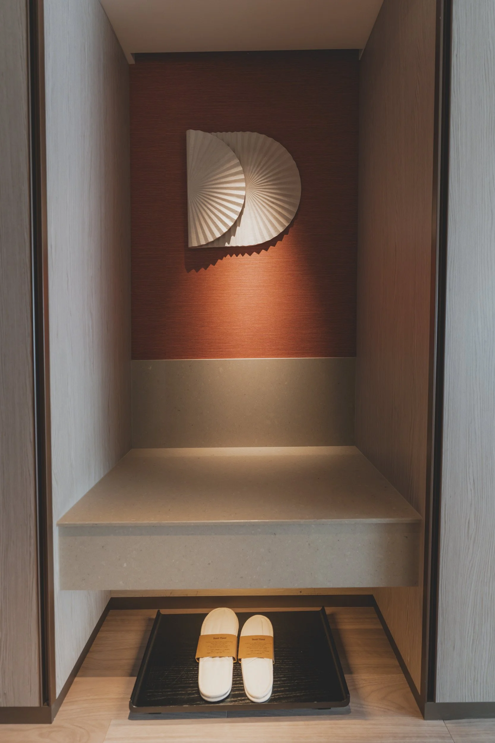The room feels elegant everywhere. Integration of modern technology without it feeling intrusive. The room features a 55-inch LCD television with full streaming capabilities and a sophisticated smart speaker system, yet these are tucked away so they don't detract from the zen-like atmosphere. The inclusion of traditional Yukata robes and high-quality slippers invites you to immediately shed the outside world. It is the kind of room that feels curated rather than just furnished, echoing the residential luxury hotels like the Auberge Collection or the Aman.