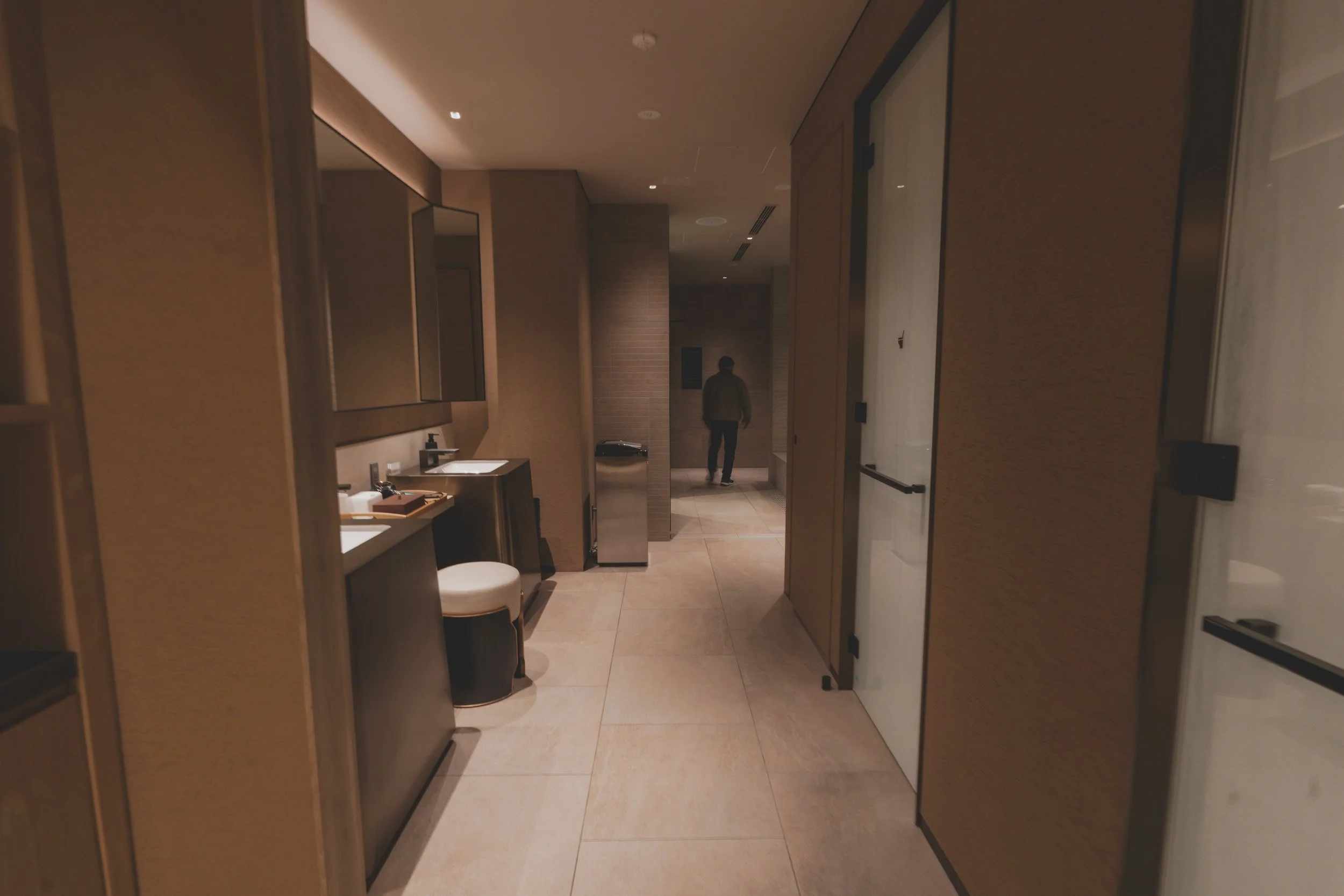 Beyond the treatment rooms, the fitness facilities are state-of-the-art and accessible 24 hours a day, featuring the latest Technogym equipment for those who refuse to let travel disrupt their regime. However, the true gem is the indoor swimming pool, a moody, atmospheric space perfect for a few laps or a quiet moment on a plush lounger. The changing areas are equally impressive, housing a sauna and a small hot tub that provide a "social bath" experience in a more intimate, private setting than a public Sento, making it an ideal retreat during Kyoto’s colder months.