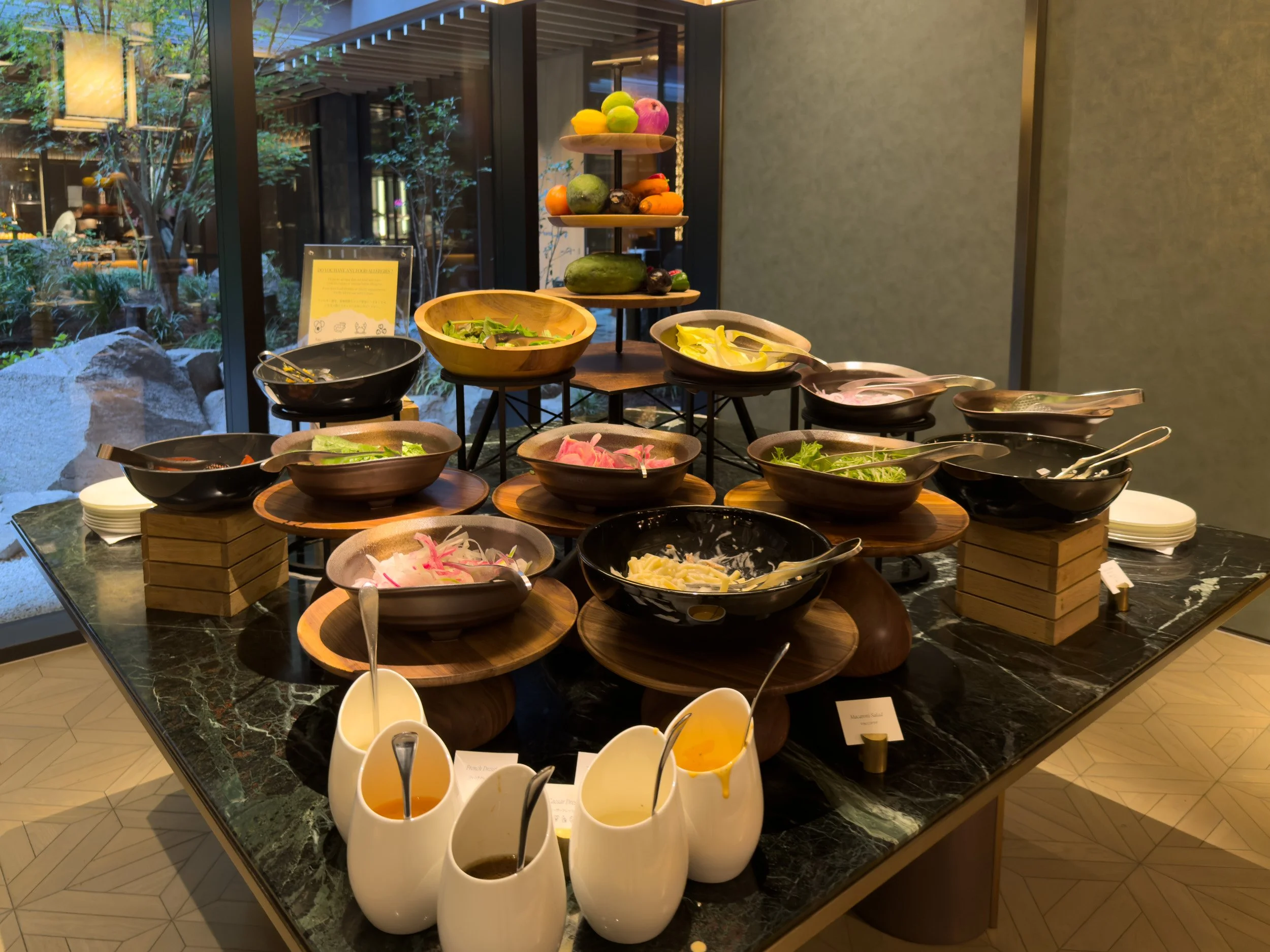 The breakfast "famed dish" that you must not miss is the Khao Tom, a traditional Thai rice soup that is elevated here with premium local Japanese grains and delicate ginger-infused broth. It is a soulful, comforting departure from the standard omelet station, though their Western offerings are equally impressive—particularly the eggs Benedict served on thick-cut shokupan (Japanese milk bread). Because your FHR status covers this daily, you have the luxury of sampling the extensive semi-buffet, which features artisanal Japanese pickles, vibrant tropical fruits, and pastries that rival the best boulangeries in Paris. It is an indulgent, lingering affair that encourages you to slow down and enjoy the garden views before heading out into the city.