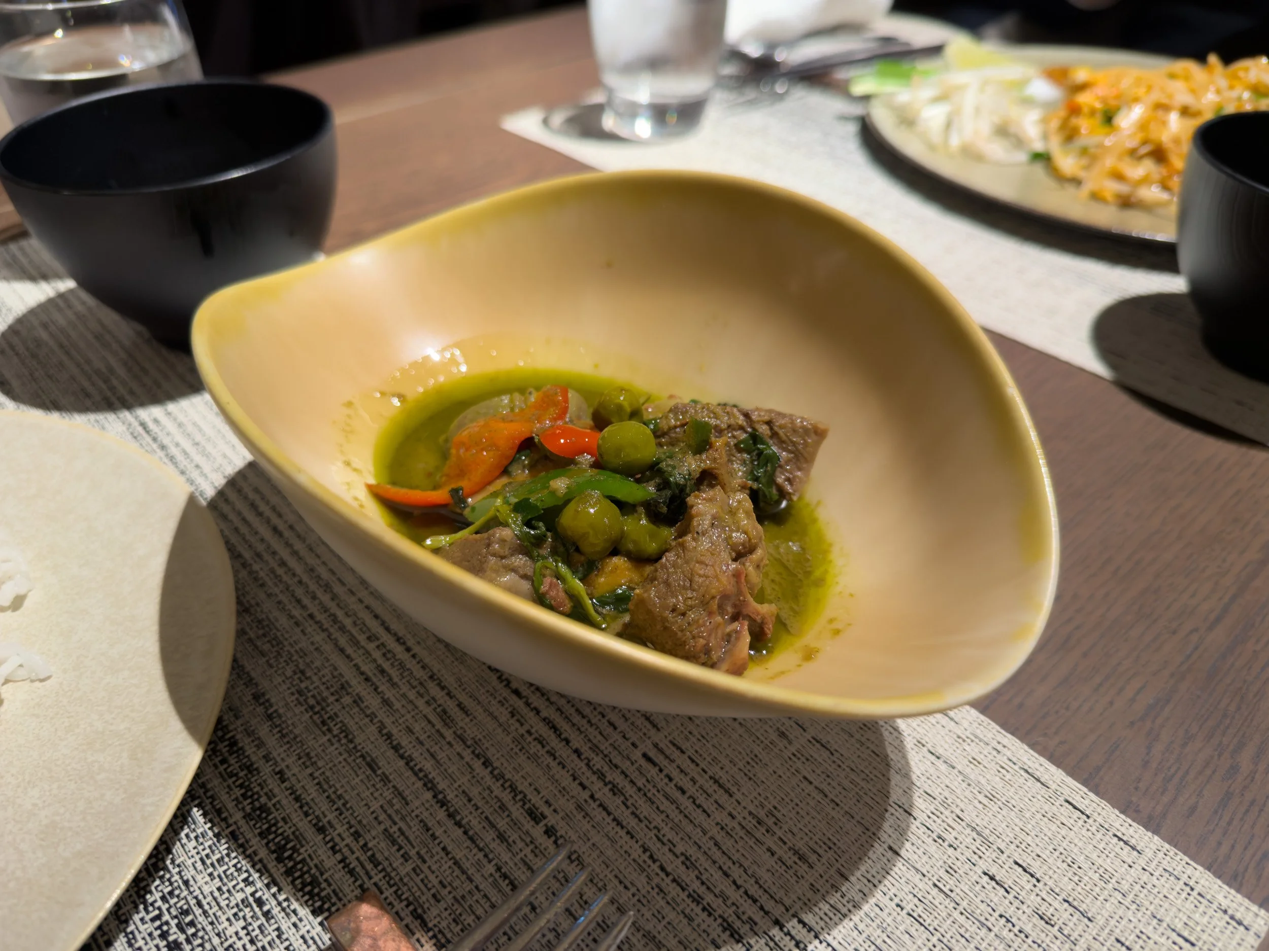The undisputed star of the lunch menu is the Khao Soi, a Northern Thai coconut curry noodle soup that is rich, aromatic, and topped with the requisite nest of crispy fried noodles. The chefs manage to source authentic bird's eye chilies and galangal, ensuring the flavors are punchy and unapologetic, yet plated with a Japanese eye for aesthetic perfection. If you prefer something lighter, the Green Curry with Wagyu Beef is a decadent fusion that justifies the use of your credit; the beef is melt-in-your-mouth tender, absorbing the complex, herbal notes of the hand-pounded curry paste. Finishing with the Mango Sticky Rice, where the mango is sliced with surgical precision, leaves you with the distinct feeling that your FHR credit wasn't just "spent," but strategically invested in one of the city's most unique dining narratives.