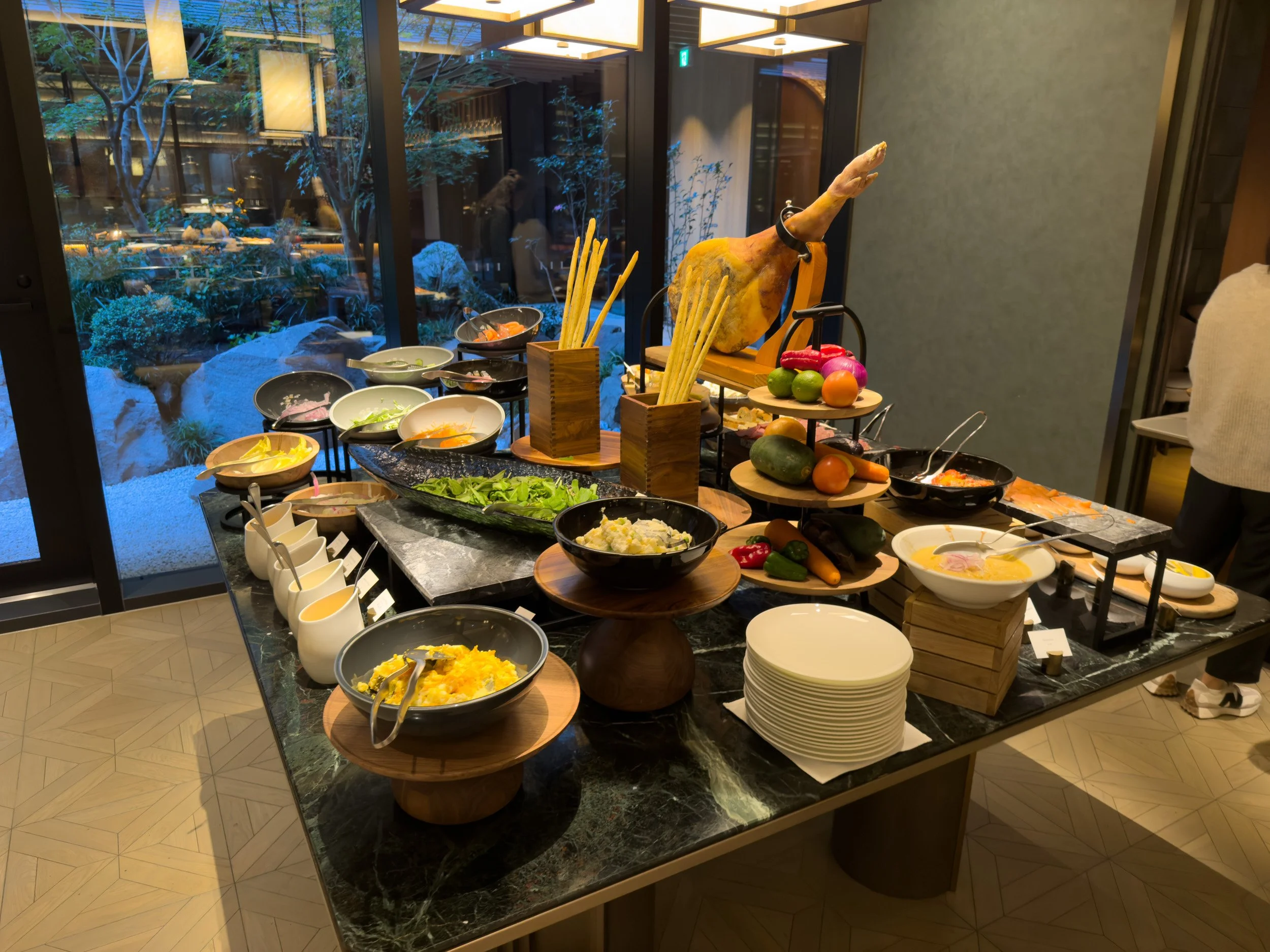 Breakfast at the Dusit Thani Kyoto is served at Kati, and it is a delightful departure from the standard hotel buffet. While there is a refined selection of high-quality continental items, the star of the show is the a-la-carte menu, which features everything from traditional Japanese breakfast sets to Thai-inspired egg dishes and fluffy pancakes. The quality of the ingredients is palpable; the eggs are vibrantly orange, the fish is expertly grilled, and the service is attentive without being hovering—a balance that is difficult to strike during the morning rush.