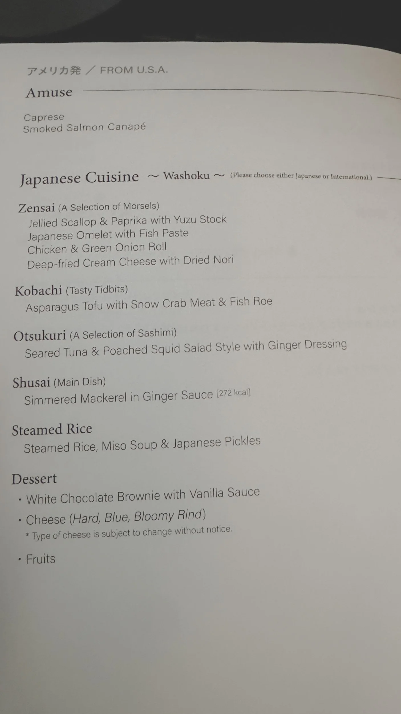 I’ve attached the menu from the flight below: