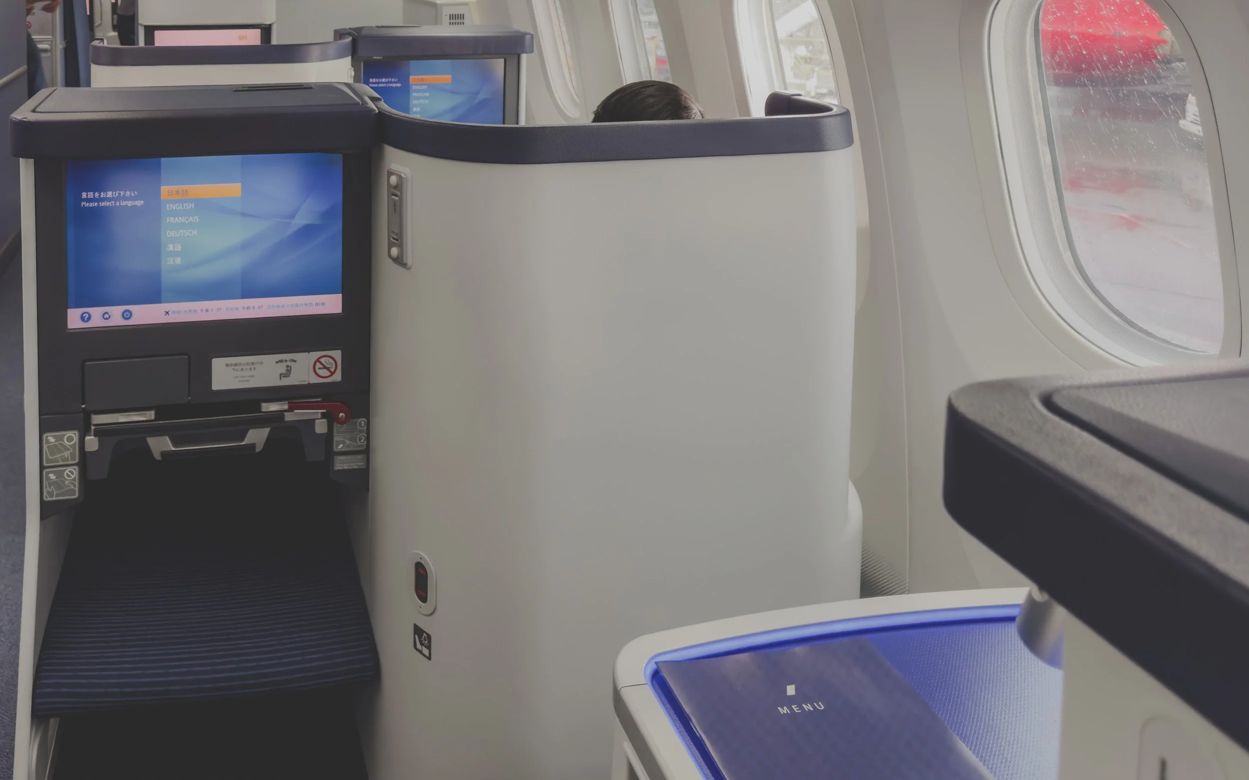 In my opinion, no ANA 787-8 Business Class seat offers more privacy than those found in rows A, K respectively. These 787 seats are against the window, with the tray area toward the aisle. From a seated position, you’d hardly see another soul in flight, unless you tried. Couples or colleagues who wish to speak or collaborate should stick to the middle section of the plane, in seats D, F or E, G respectively. These seats are close, but not “too close”. I was fortune to grab window seats from both sides (A & K) and had no problem with privacy during my flight to and from Tokyo to Seattle.