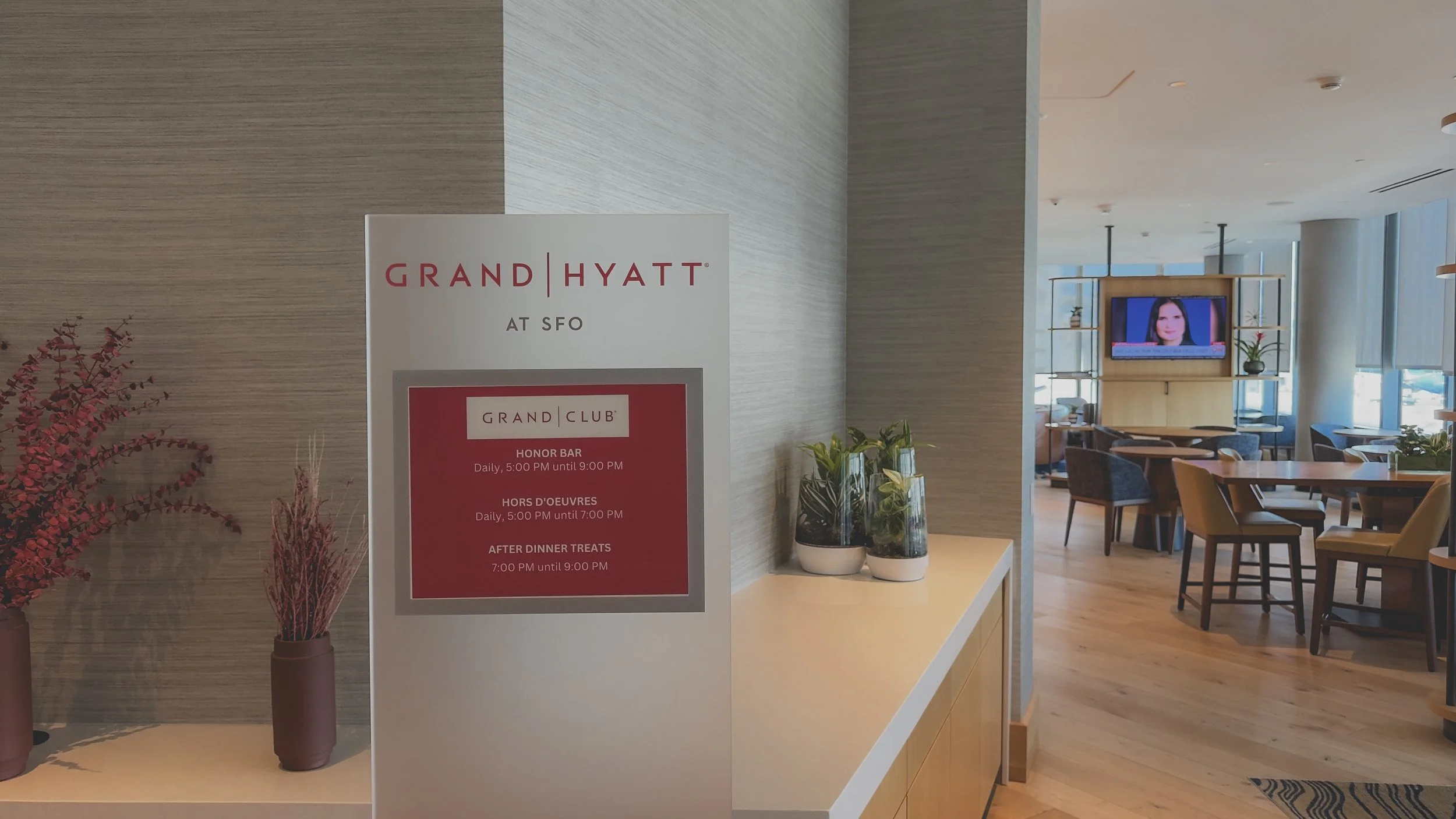 The Grand Club at the Grand Hyatt at SFO is a factual masterclass in airport lounge design, offering a 3,300-square-foot sanctuary that effectively bridges the gap between a high-end residential living room and a professional executive suite. Located on the 7th floor, the space is defined by its soaring ceilings and a massive, continuous wall of floor-to-ceiling glass that provides a front-row seat to the intricate ballet of the international terminal’s heavy metal. The layout is intelligently partitioned into several distinct zones—ranging from communal dining tables and "library" style work nooks to cozy, fireside seating areas—ensuring that the lounge never feels congested even when the hotel is at peak capacity.
