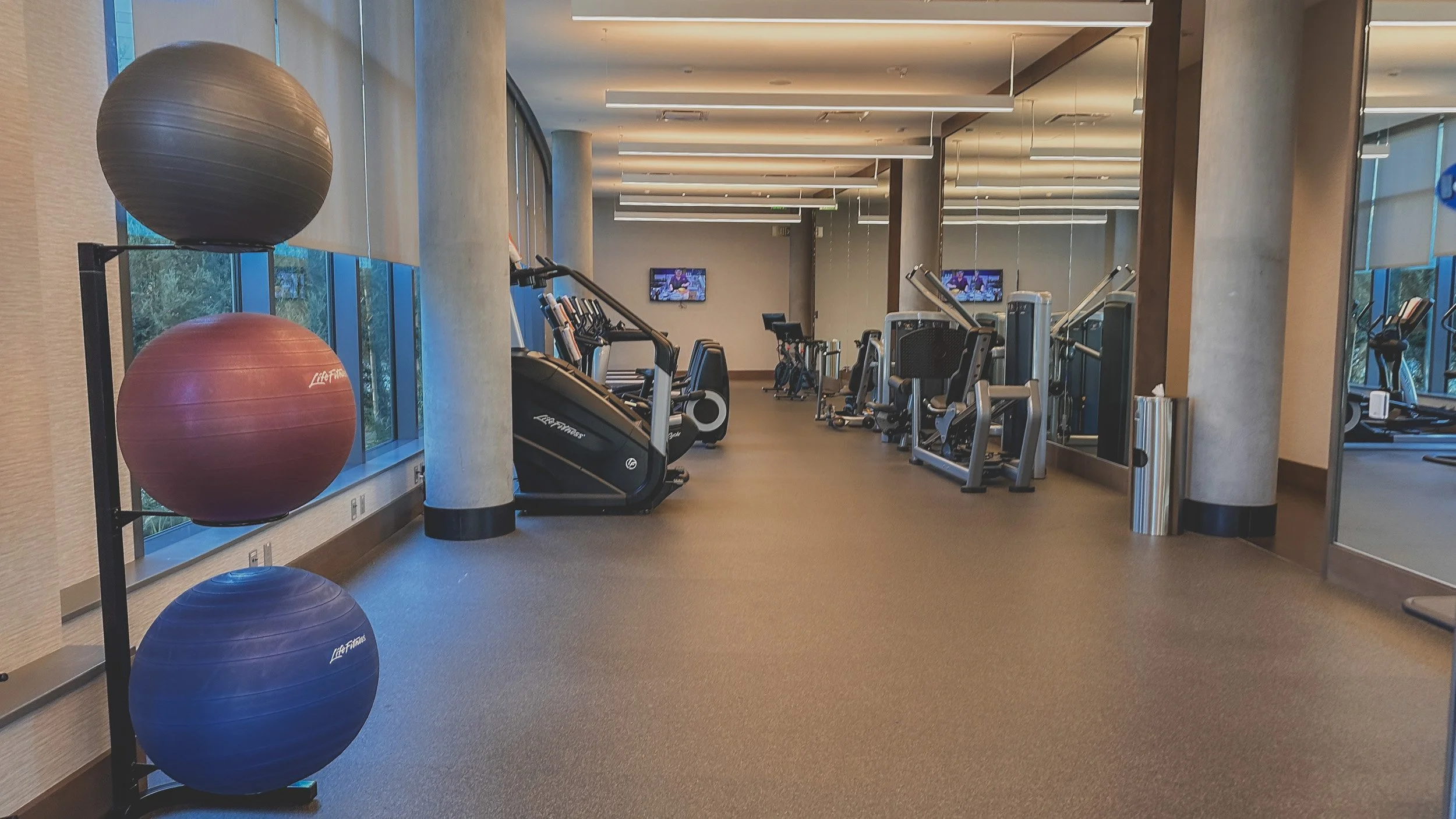 The fitness center at the Grand Hyatt SFO is factually one of the best in the Hyatt system. Located on a high floor with sweeping views of the airfield, the facility is flooded with natural light, making a morning workout feel invigorating rather than subterranean. The layout is spacious, with dedicated zones for cardio, strength training, and functional movement. It is a "living" gym that feels like a high-end private club, complete with chilled towels and high-quality hydration stations.