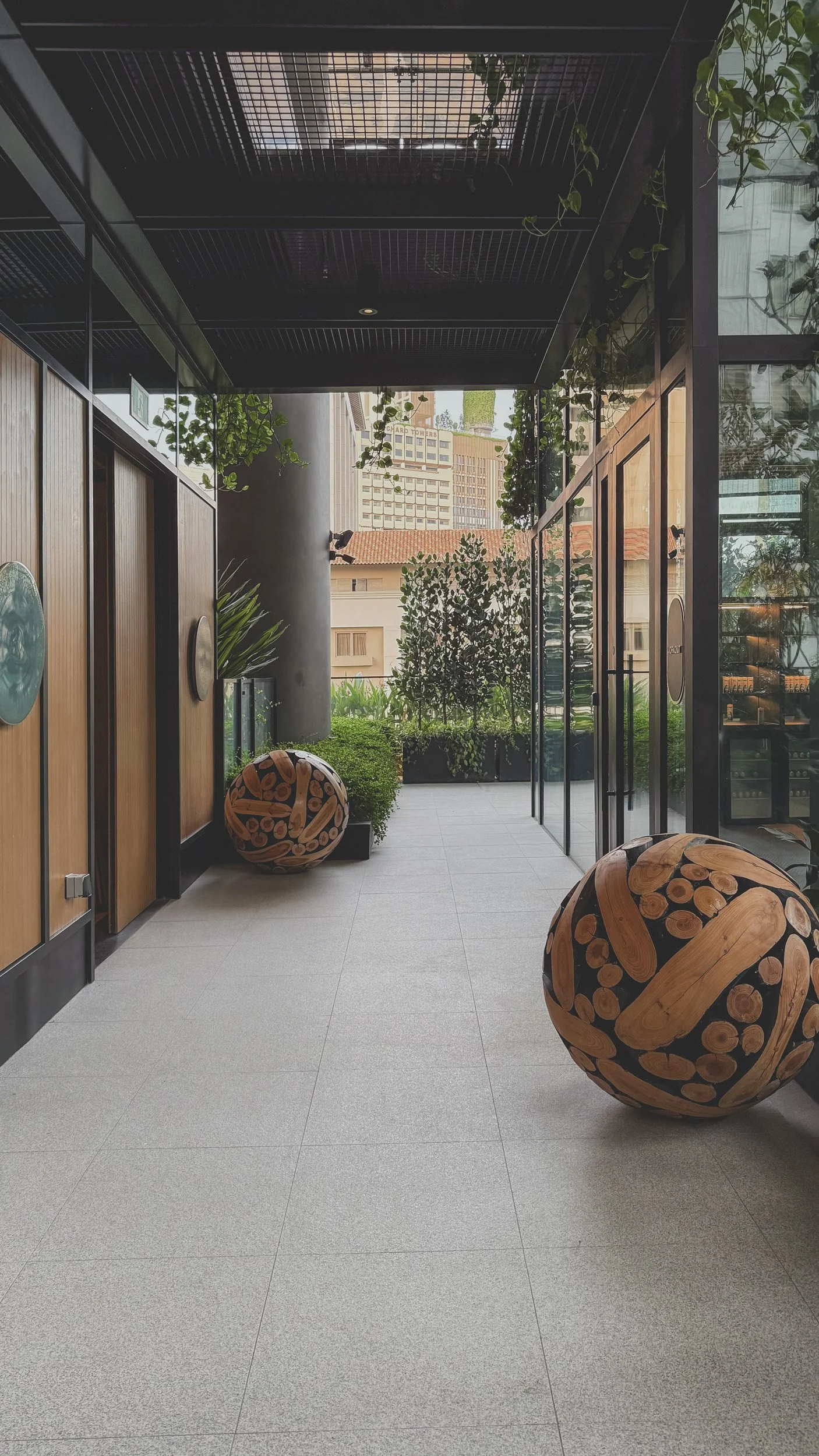 While compact in its footprint compared to the 5-star heavyweights of Singapore hotels, this boutique property maximizes vertical space through impressive ceiling heights, architectural arches, and suspended design elements. Outdoor spaces feature prominently in the design, from the ground-level garden terrace to the fifth-floor wellness and fitness center area. Many guest rooms open onto private balconies (mine included), with select accommodations offering expansive terraces that stretch almost an entire floor!