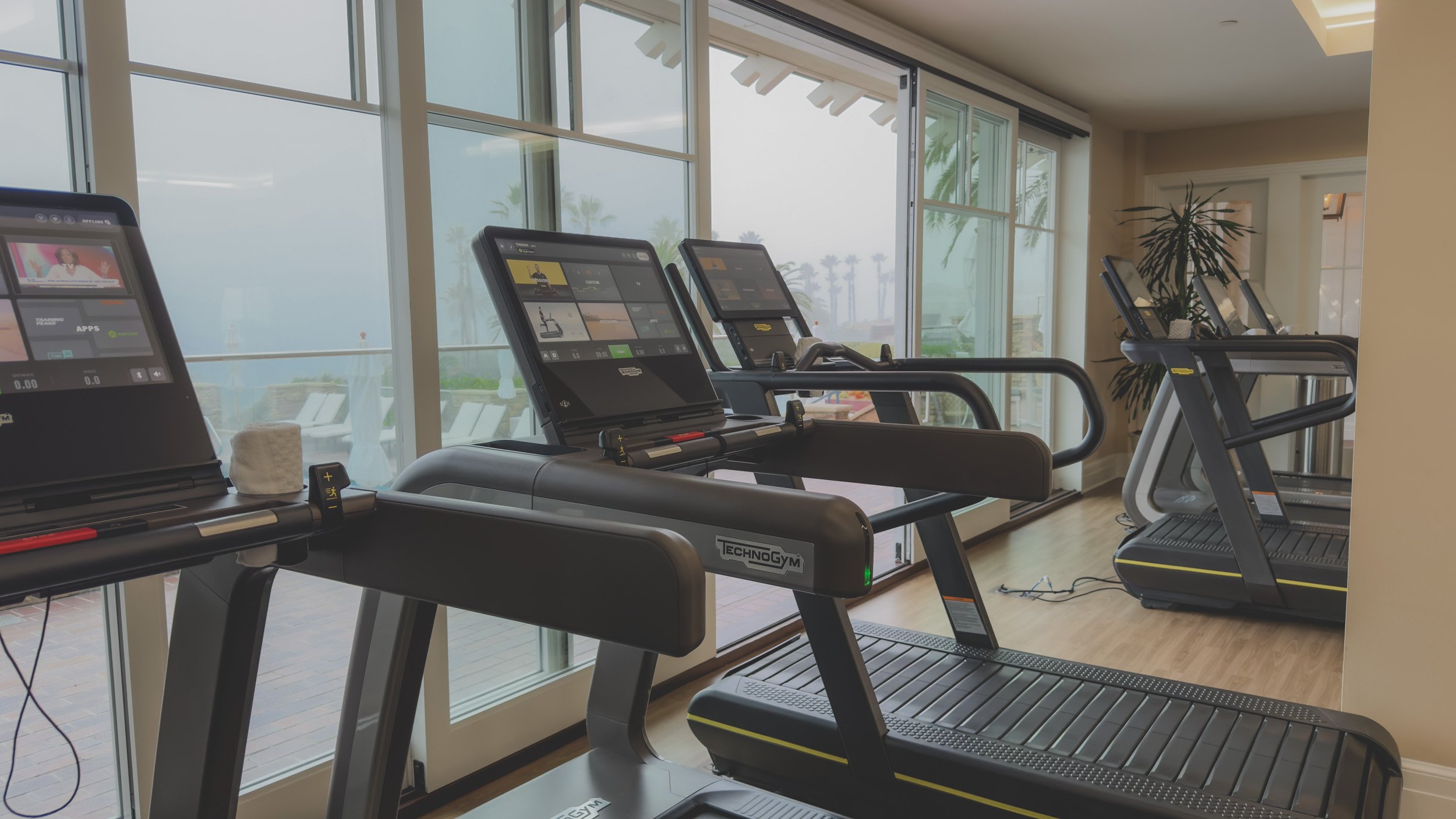 The Fitness Center at Montage Laguna Beach has been recently upgraded with a selection of the newest fitness equipment, bringing boutique-studio quality to a resort setting. Cardio lines include top-tier treadmills with interactive touchscreen displays, carbon-drive recumbent and upright bikes with streaming capability, and a high-end rowing machine favored by professional trainers. Strength training is supported by a smart, club-grade equipment suite, free weights up to heavy poundages, and functional training stations with cable rigs, kettlebells, battle ropes, and suspension trainers. New additions include connected resistance machines with digital coaching, a full set of adjustable dumbbells, and recovery tools such as percussion massage devices and pneumatic compression units.