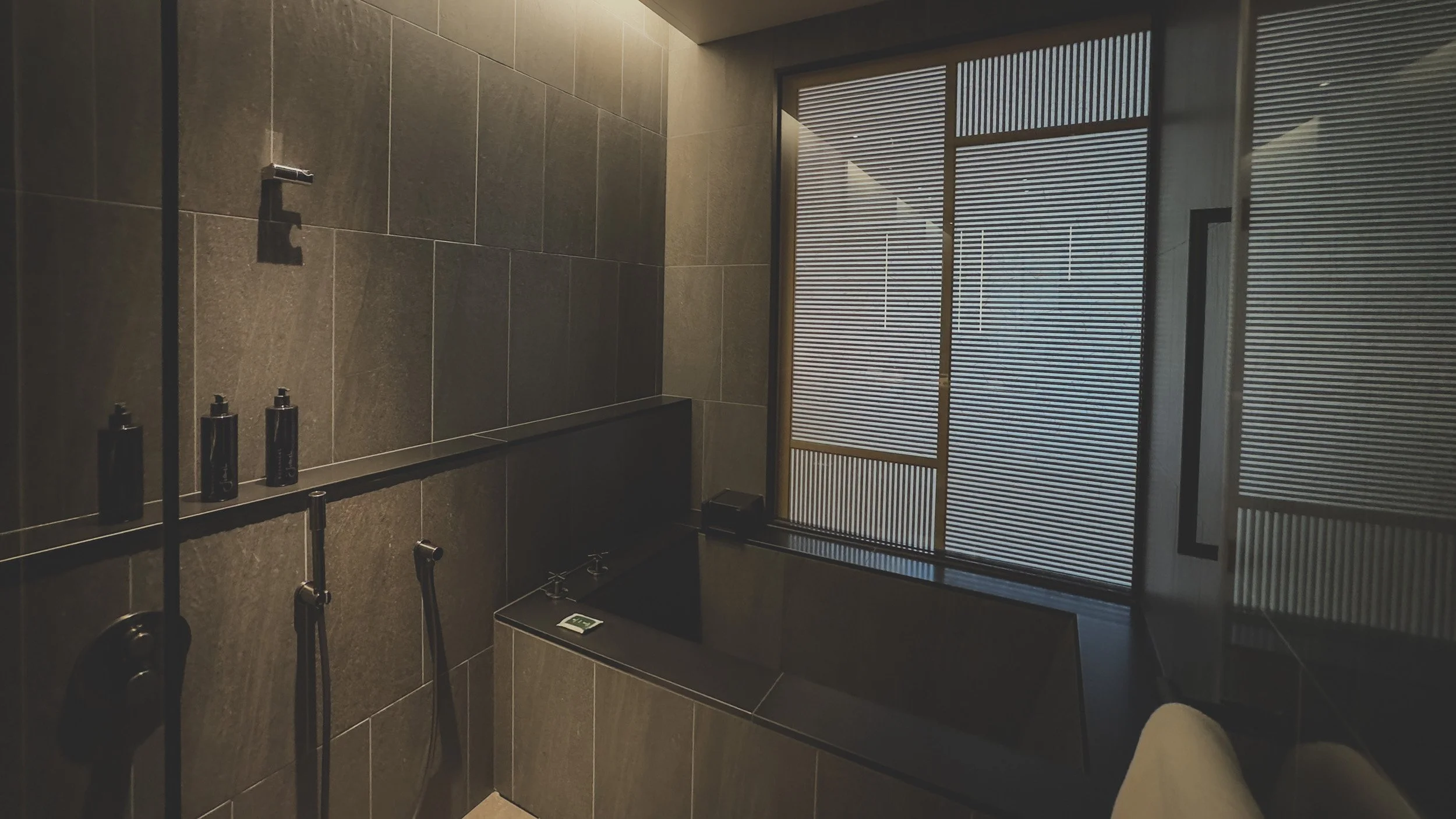 The attention to detail extends to the "wet room" design, where the open-concept shower features a powerful rainfall head and a traditional wooden stool for an authentic onsen feel. You are pampered with exclusive ROKU SPA amenities and the hotel’s signature White Tea scents, while the double-vanity area provides ample space with soft, recessed lighting that mimics natural daybreak. The transition from the warm, mineral-rich waters of your private bath to the plush, oversized robes provided is a masterclass in the Japanese art of relaxation, ensuring the bathroom feels less like a utility and more like a personal sanctuary.