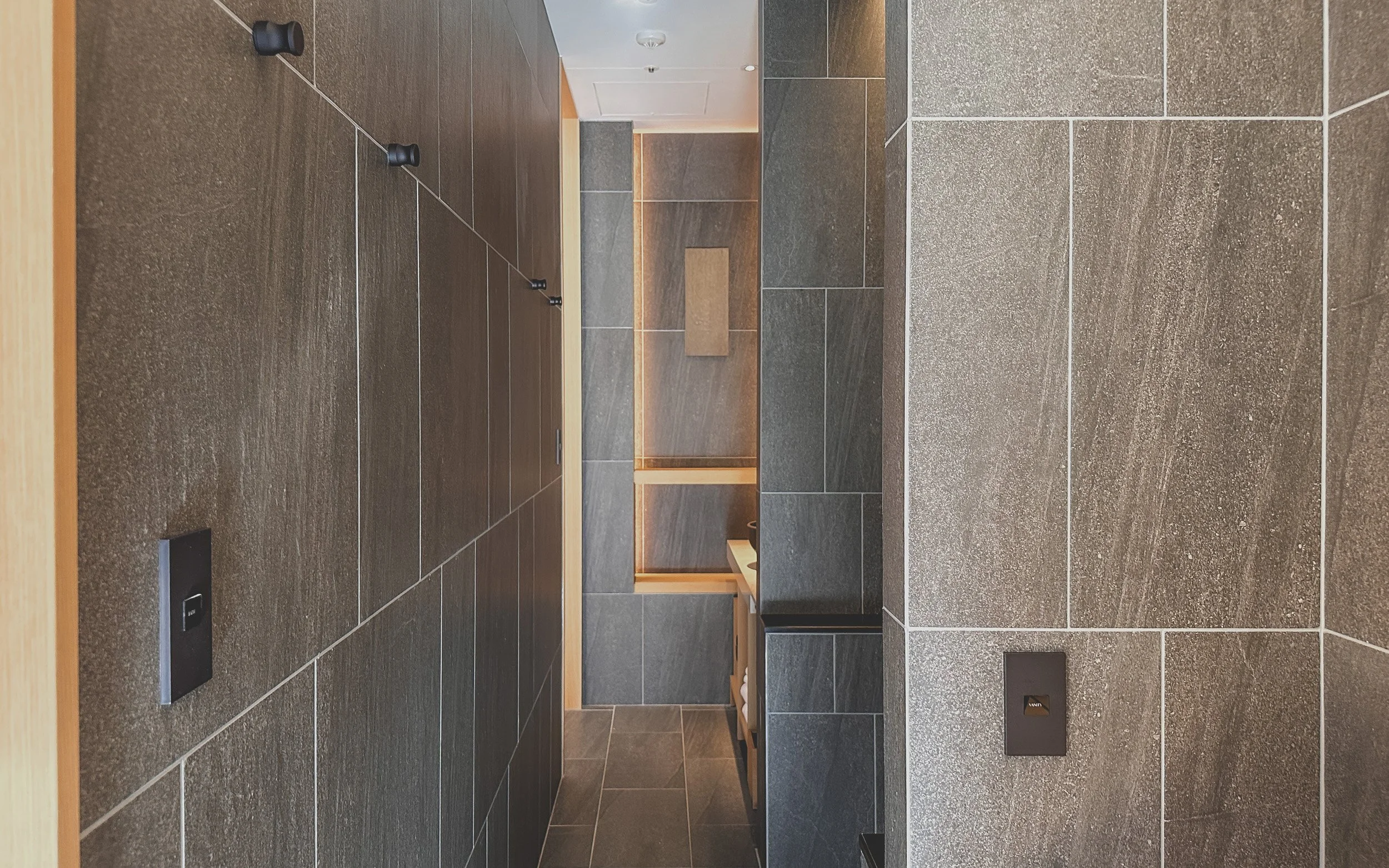 Near the bed is a beautiful minibar, which comes with Nespresso and various tea selections. A massive flat-screen TV is mounted opposite of the bed along with another entrance to the bathroom. Woven headboards with abstract motifs, bespoke tea ceramics and wooden lattice partitions add various layers of luxury and warmth to the rooms. A pro tip here - these rooms do get hot quickly if you leave the blinds and sheers open, so if you want to keep your room cold, I’d make sure they’re closed when you leave the room.