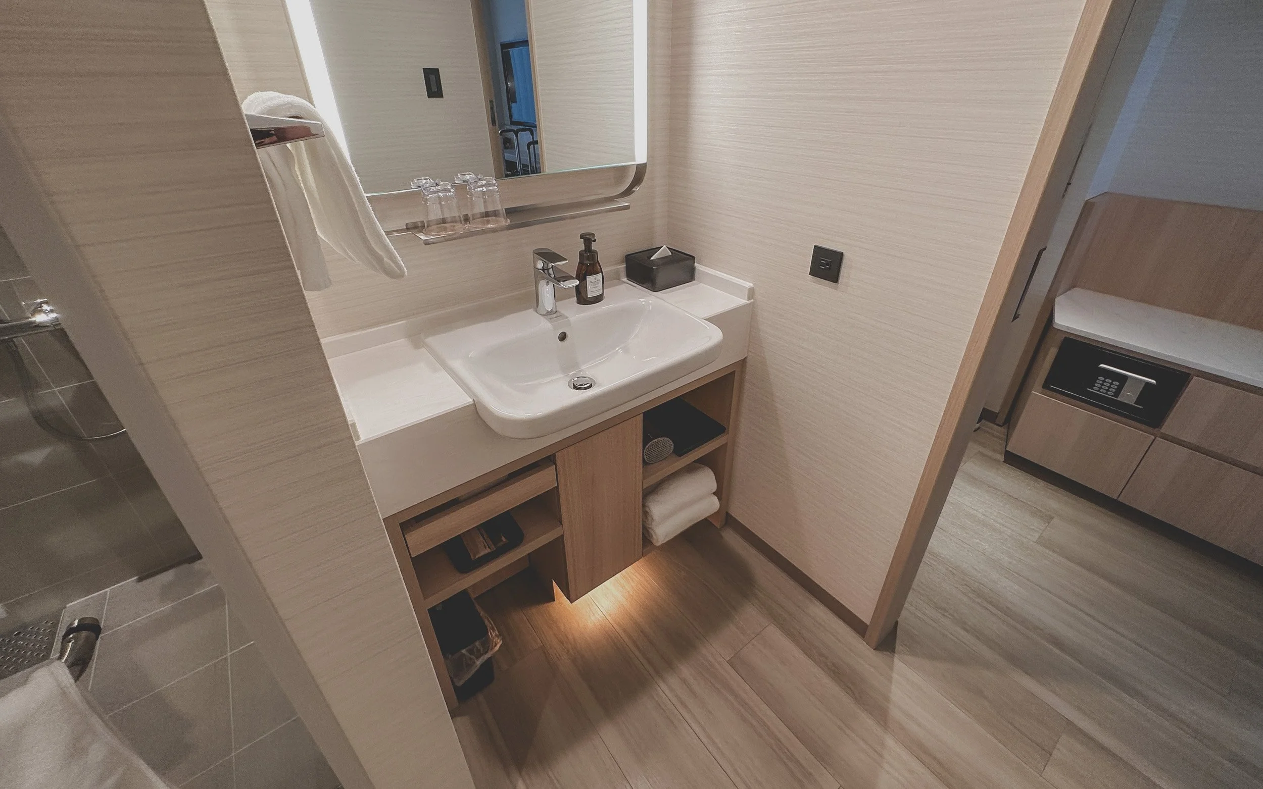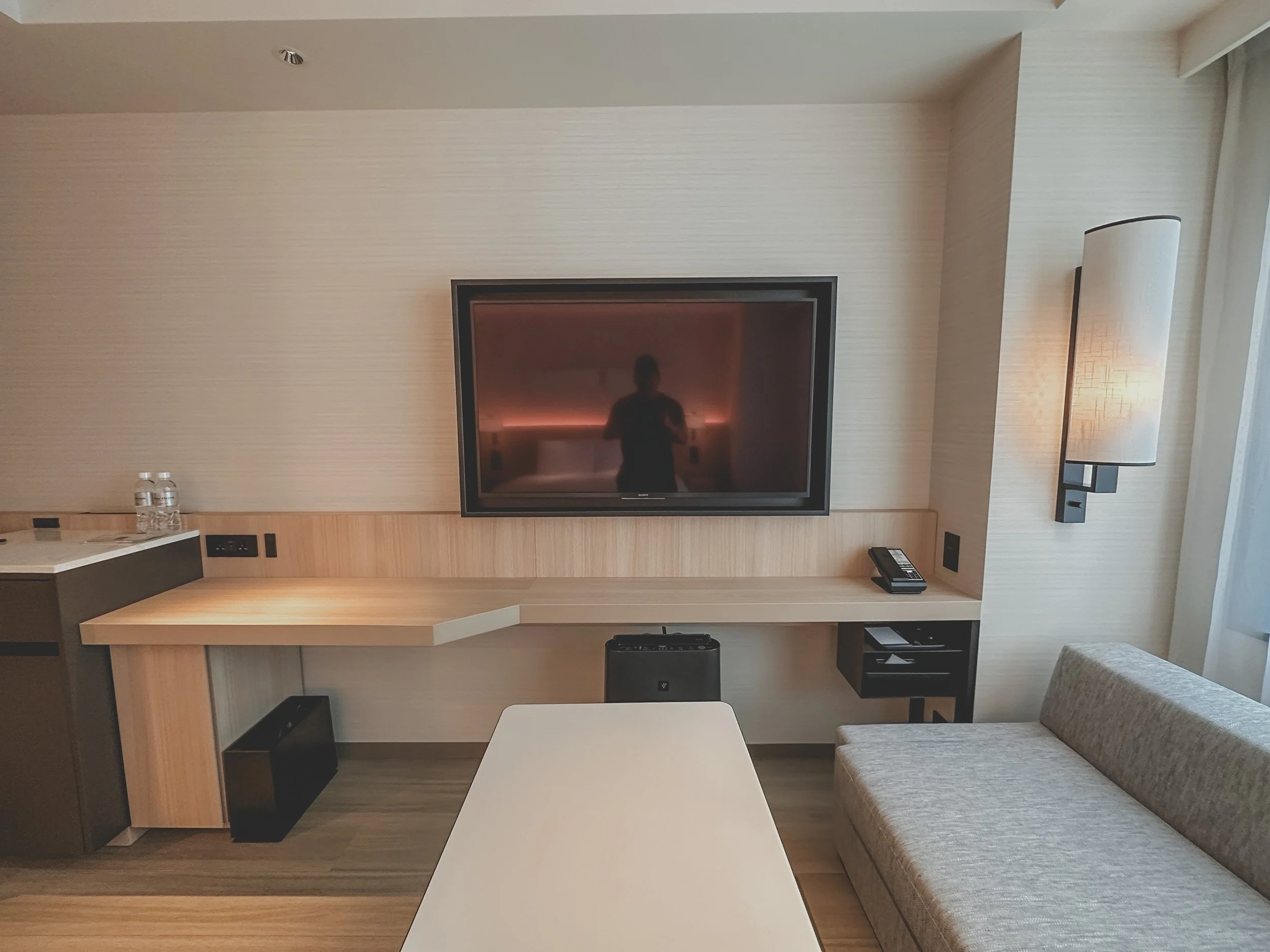 Because this is a newer build, the acoustic engineering is precise, ensuring that the city’s pulse remains outside. The King Size bed (180cm wide) is the undeniable centerpiece, providing a restorative comfort level that matches the Hyatt Regency. It is a space that respects the modern traveler’s need for both deep work and deep rest, providing a polished and predictable sanctuary that punches well above its weight class. We had no problem sleeping throughout the night, and found it to be on par with various 5-star hotels in Japan.