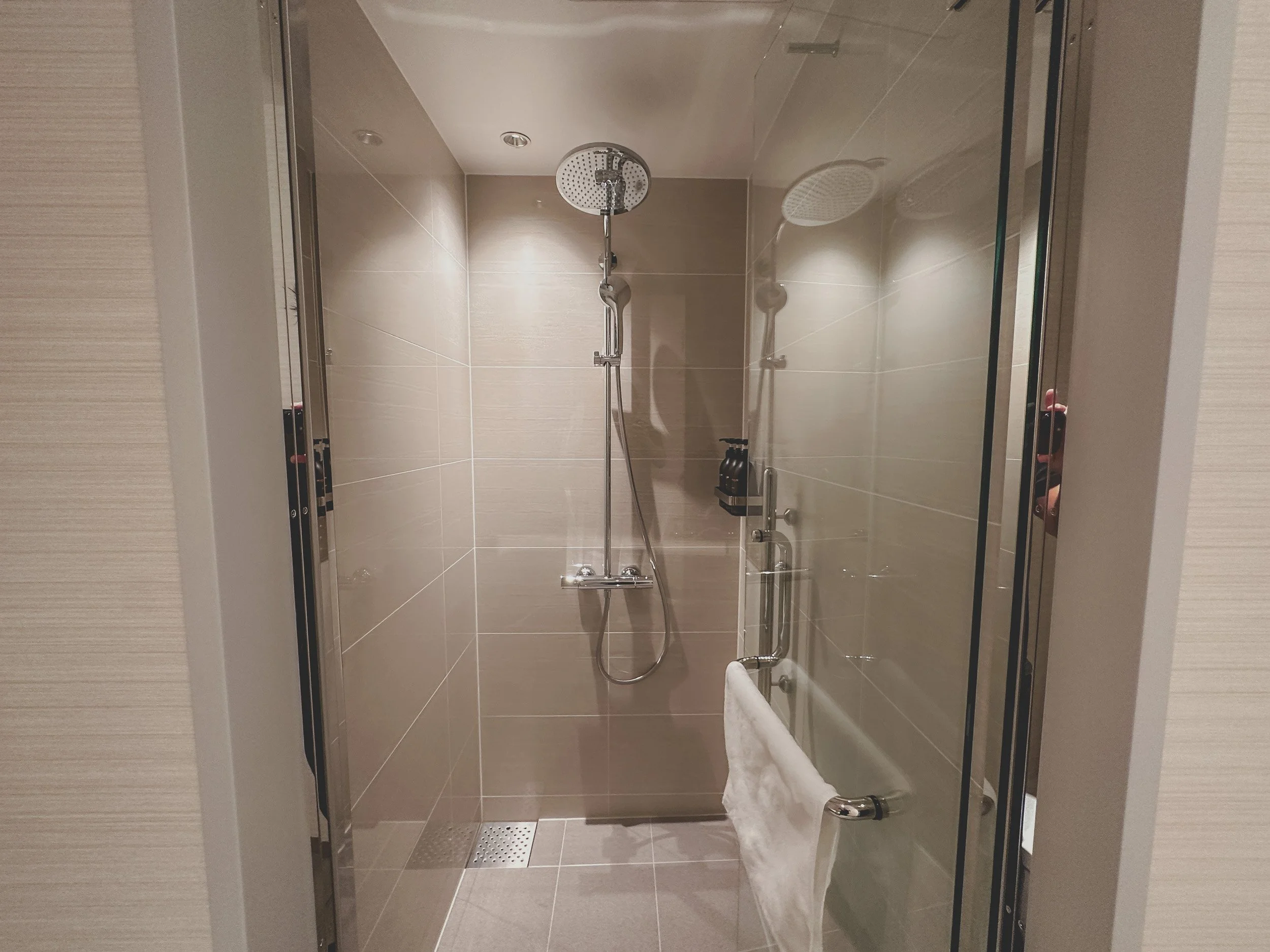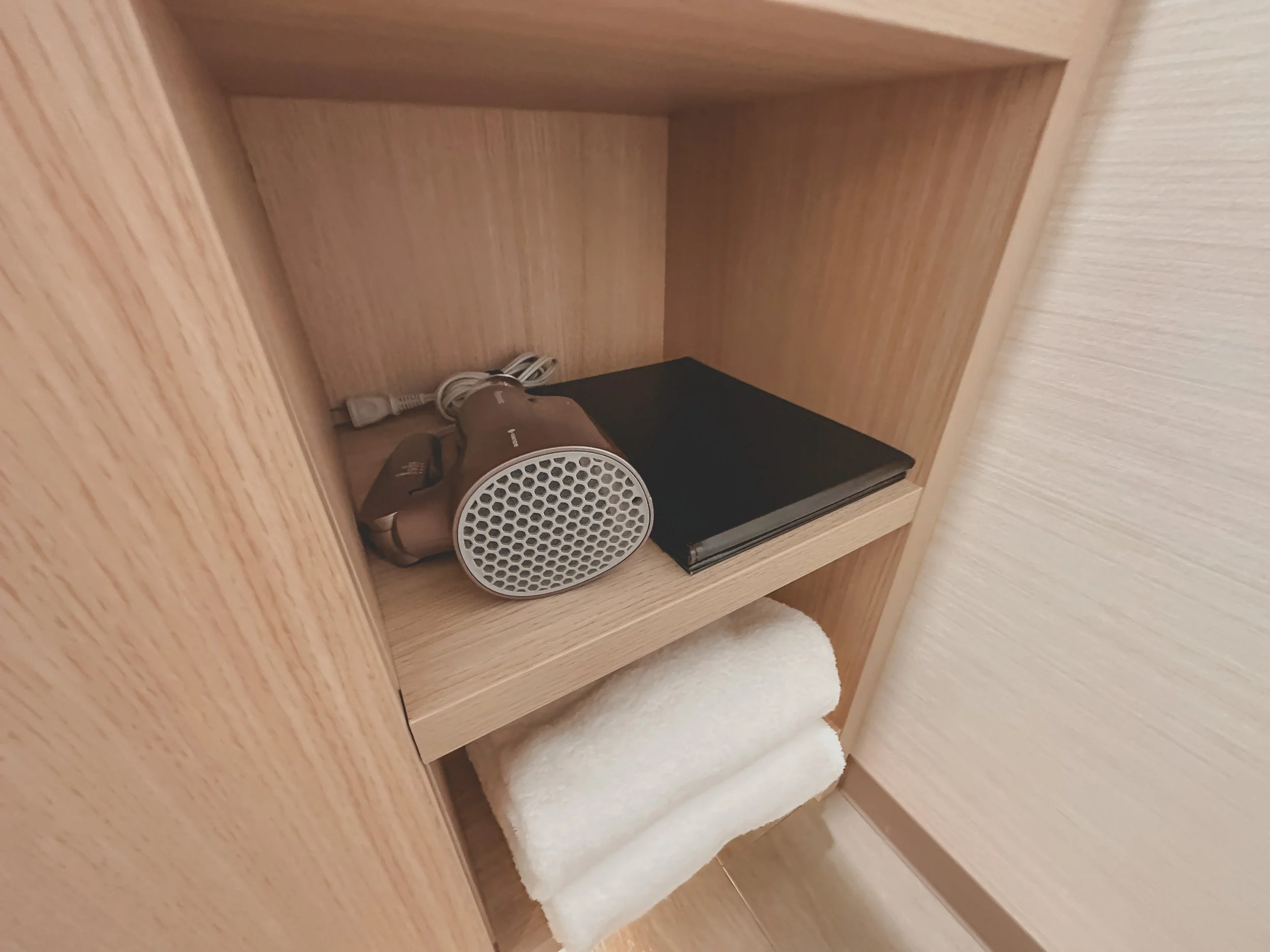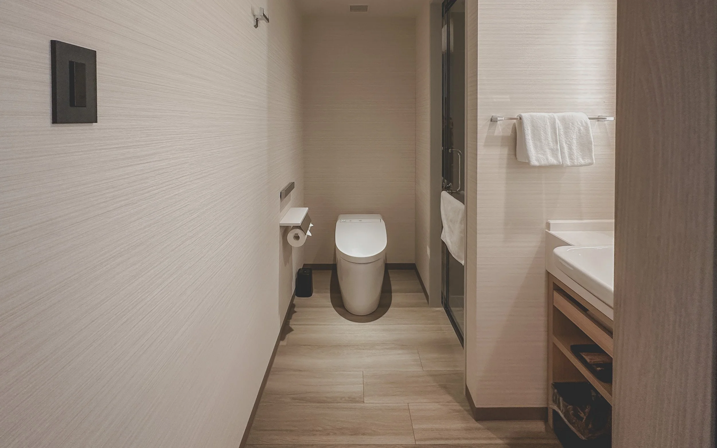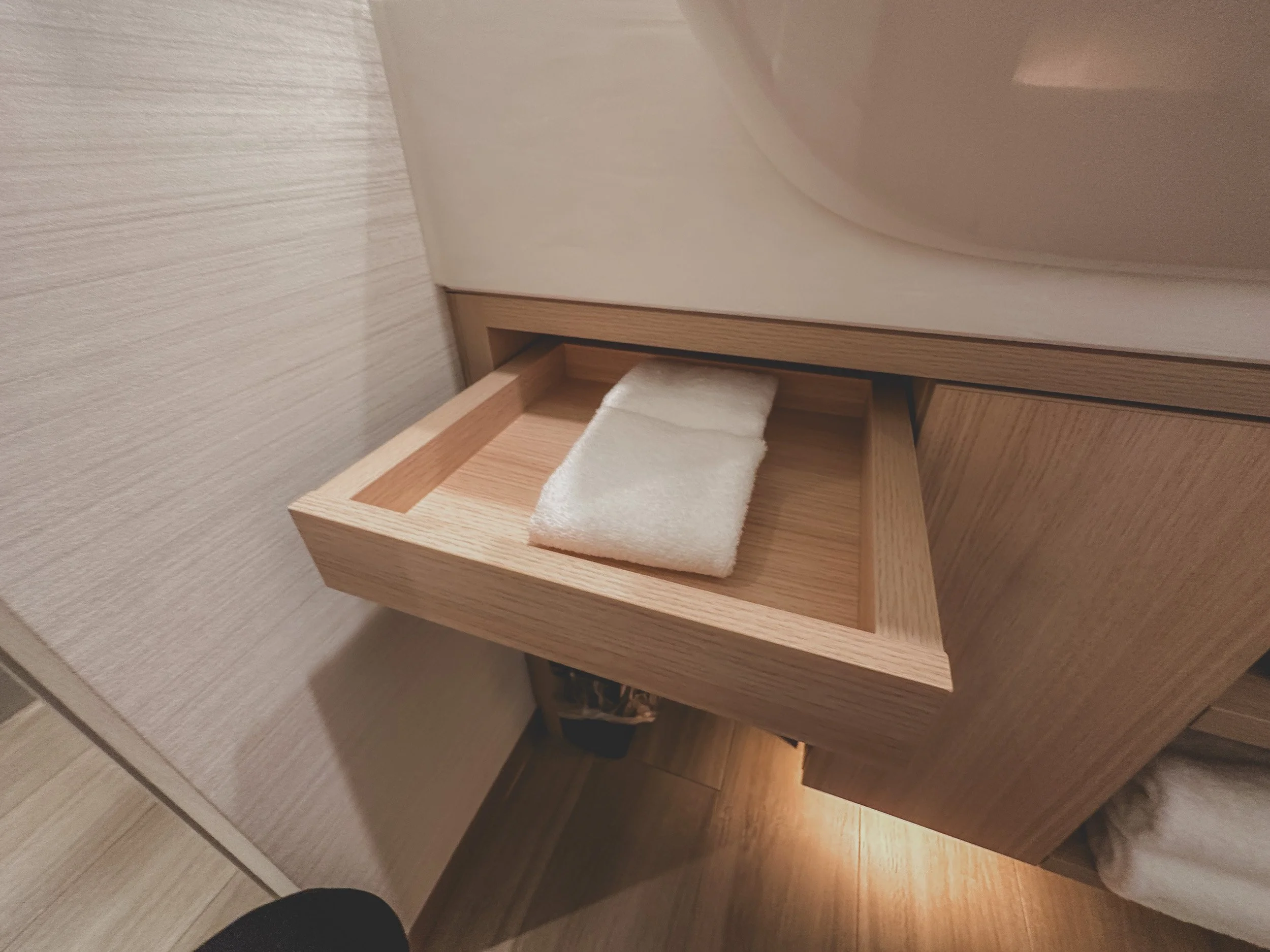 Functionally, the space is engineered for the modern nomad. From the heated Toto bidet to the instantaneous temperature control in the shower, the mechanical reliability is flawless. It is a bathroom that maximizes the basics, providing a clean and luxurious environment to wash away a day of visiting Kyoto. The transition from the high-pressure shower to the comfy bed is one of the most underrated perks of the stay.