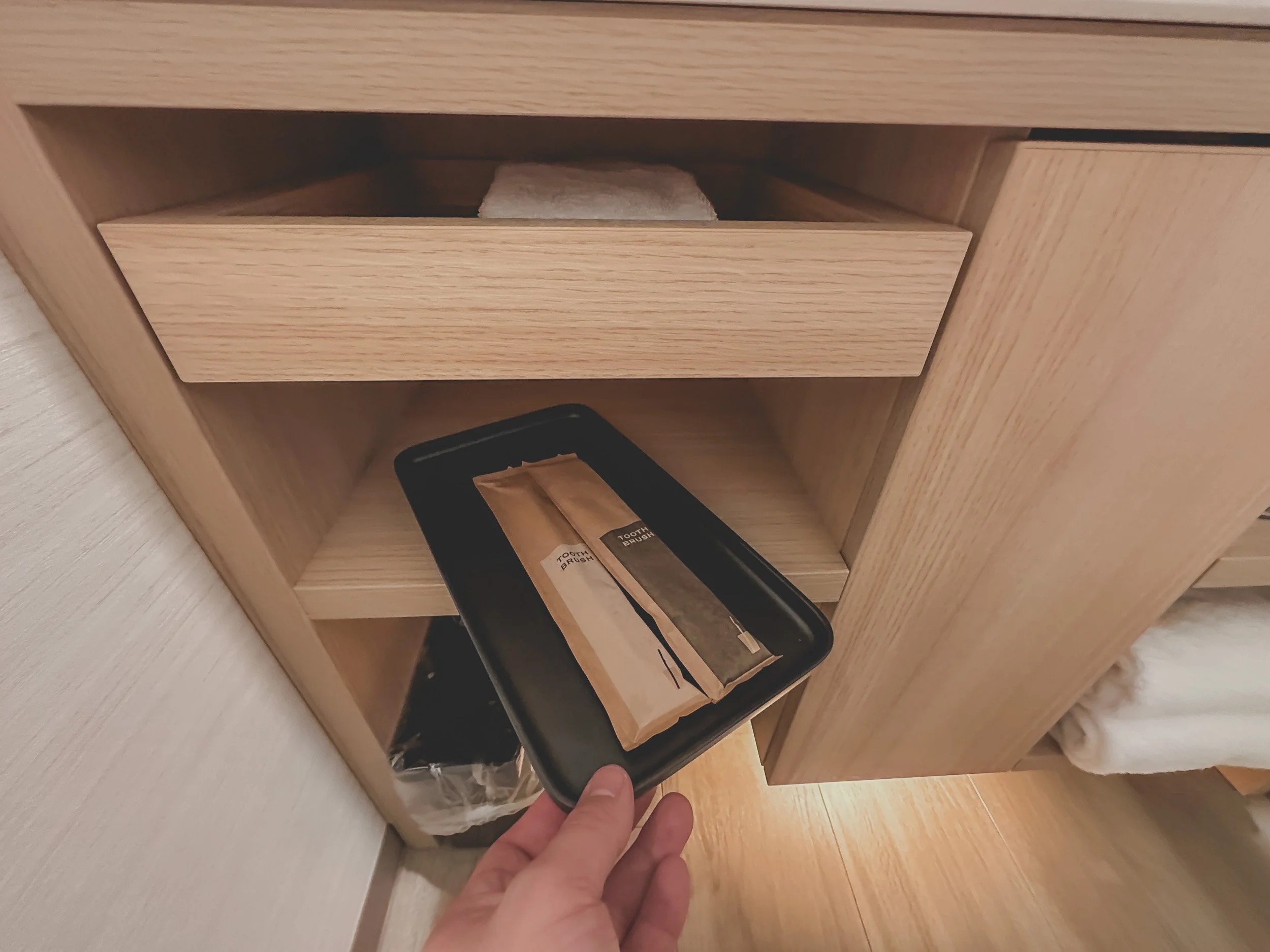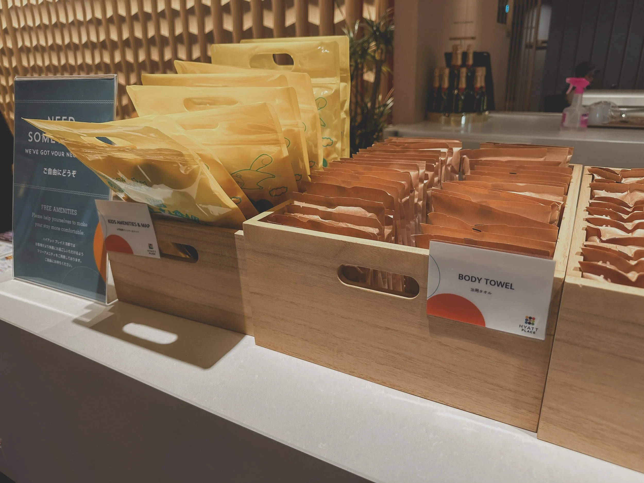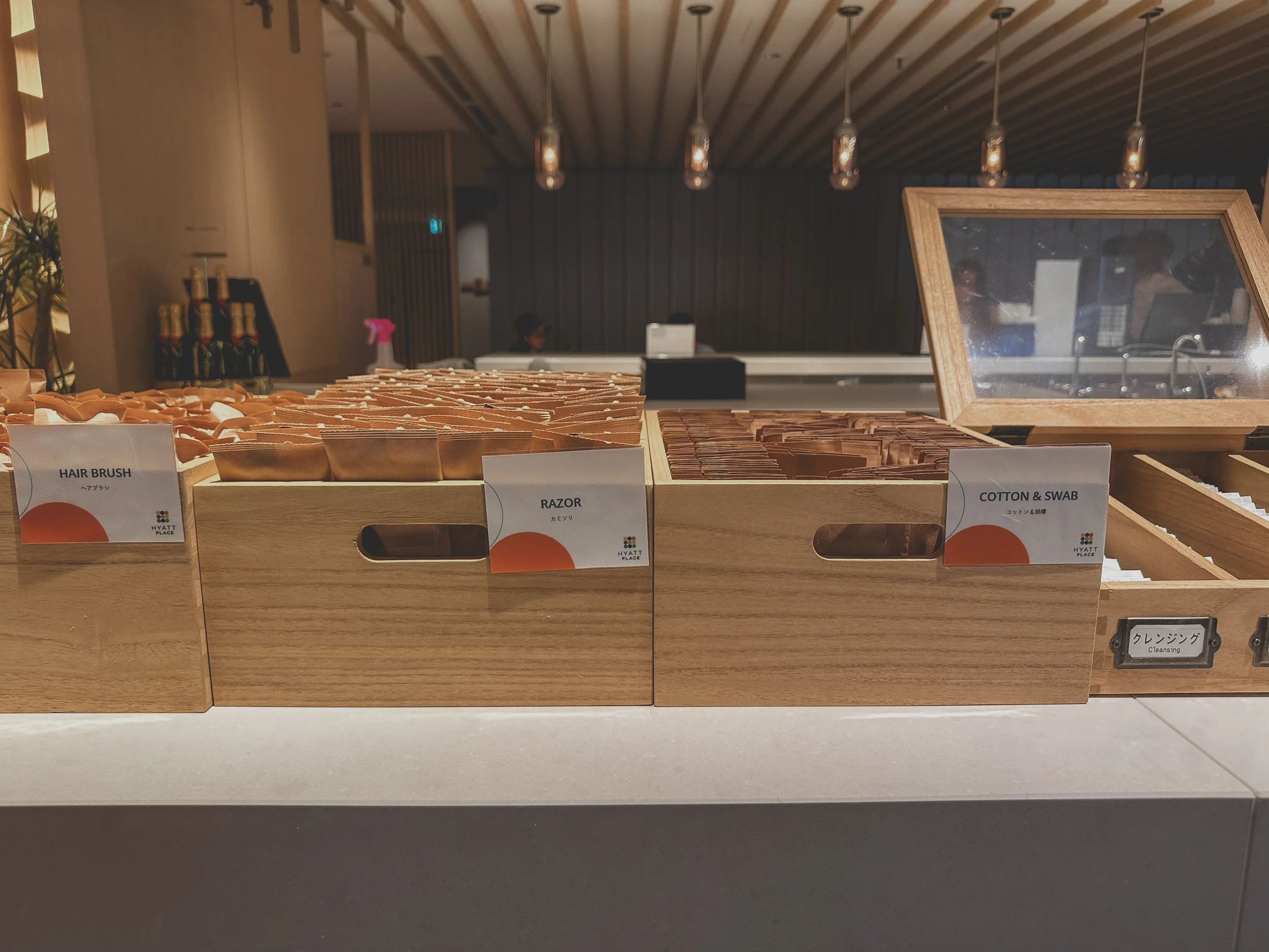 The hotel’s commitment to "unscripted" convenience is most visible at the Amenity Bar located near the reception desk. Instead of cluttering your room with items you might not use, Hyatt Place invites you to curate your own kit from a series of wooden bins. It is a thoughtful, eco-conscious system that ensures the lobby remains a vibrant, interactive space. The selection usually includes high-quality razors, cotton swabs, hairbrushes, and extra toothbrushes, alongside specific Japanese skincare essentials like cleansing oils or face washes. For those traveling with younger explorers, the staff often provides children’s kits which include adorable slippers, a child-sized toothbrush, and a bath sponge—small touches that make the property feel surprisingly warm and family-friendly.