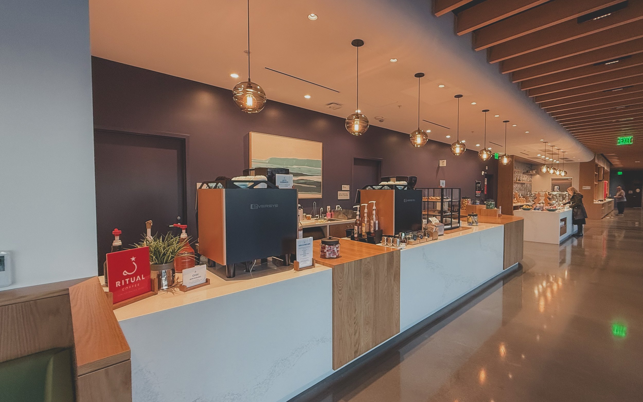 The coffee situation deserves its own section. Similar to the American Express Centurion Lounge at Seattle’s airport the lounge also provides a barista that serves any custom coffee, which was a massive win. Besides the standard self-serve stuff, there's a proper espresso bar with baristas who know what they're doing. I'm talking real latte art, perfect temperature, and they even ask if you want an extra shot. The morning I was there, they were featuring beans from a local Bay Area roaster - nice touch.