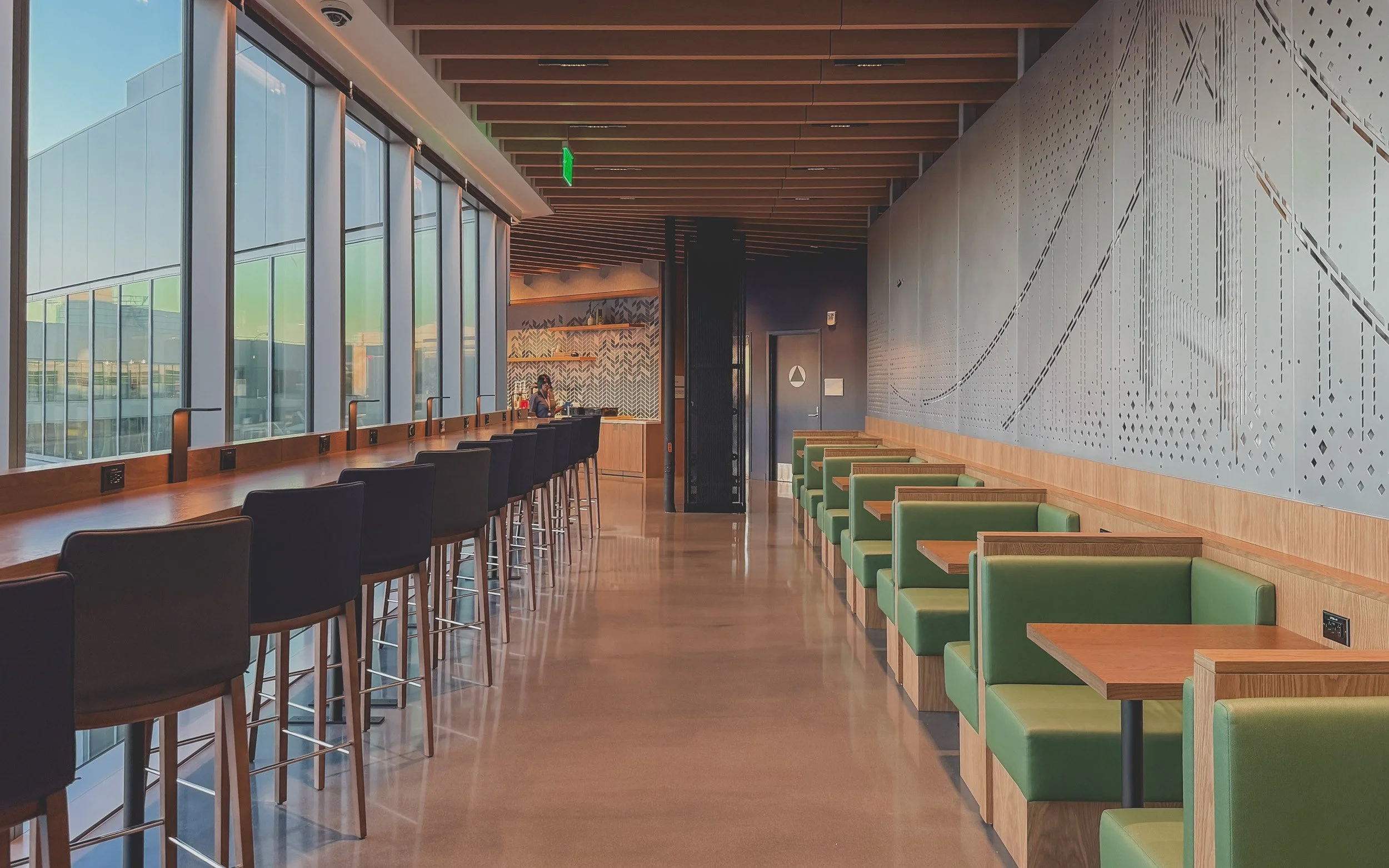 The main lounge area is well thought out. Instead of cramming in as many seats as possible, they've created distinct zones that cater to specific travelers. There's plenty of seating for solo travelers, couples, and small groups. The booth seating along the windows is particularly clever - each one has its own power outlets and USB ports, plus a small table that's actually big enough for a laptop and a meal. No more balancing acts required. It’s quite great really. People who want to work can work, and people who want to relax can relax. It’s a simple task but job well done here, Alaska Airlines!