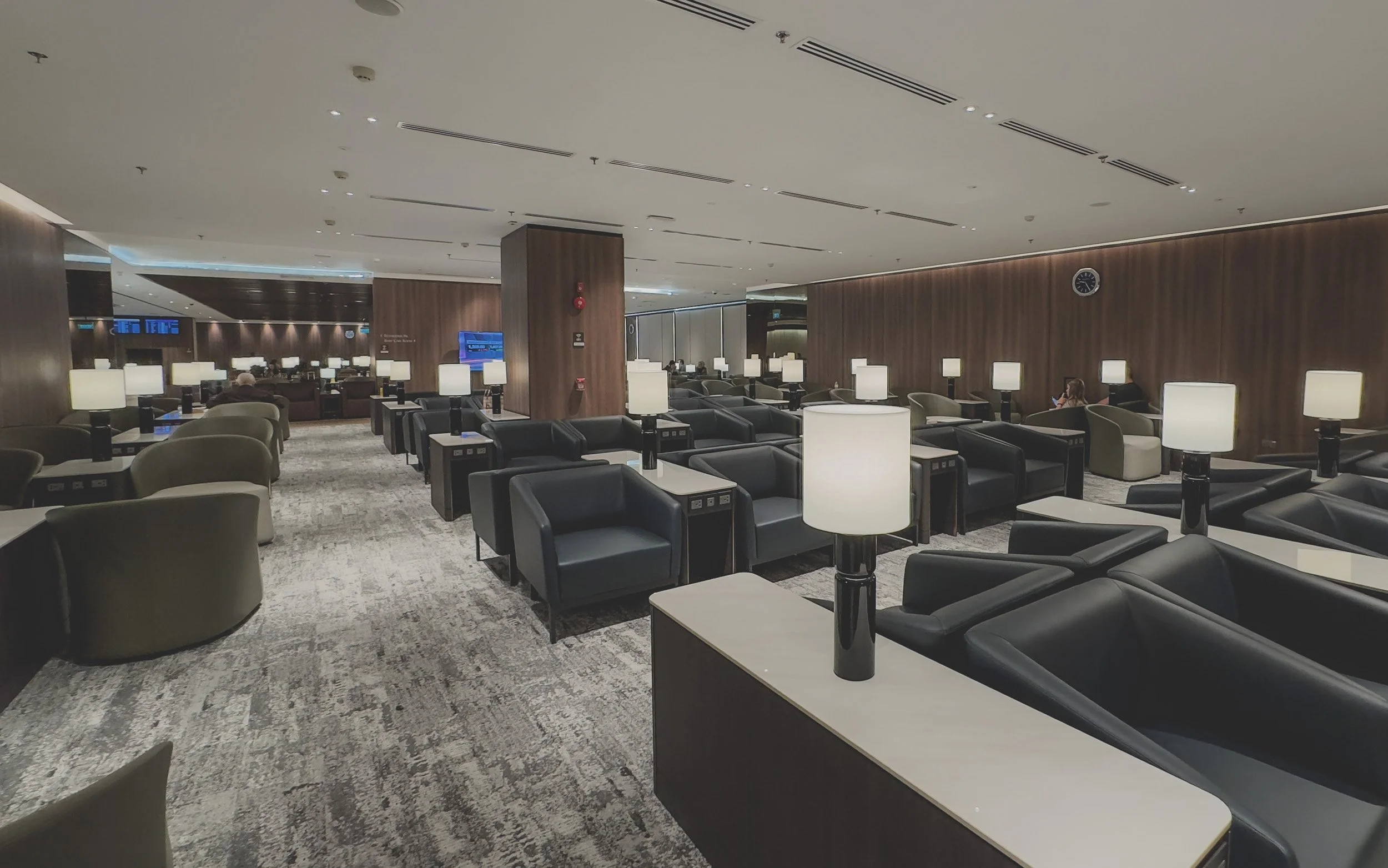 Interestingly enough, the ambience of this lounge couldn’t be more different than the newly renovated T3 SilverKris Business lounge, with this T2 facility featuring dim lighting and dark colors, make it quite sultry. The lack of any windows, even with internal views, is a slight disappointment, as it would have been more airy and open to all guests.