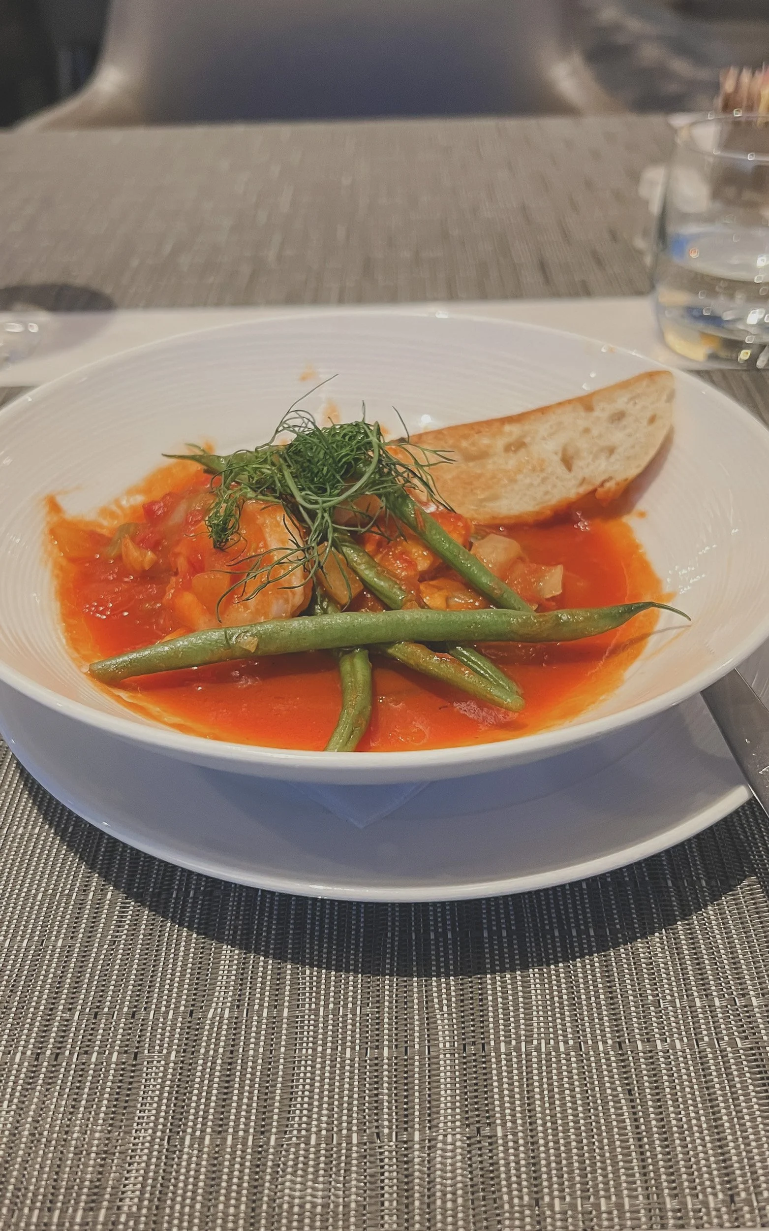 Dining close to the 7–8 p.m. window meant the room wasn’t crowded, and I had a great time chatting with the attentive waitstaff as they kept the champagne and chardonnay flowing. Don’t mind if I do! Do note that The Dining Room’s opening hours are shorter than the main Polaris lounge, so check your flight time to avoid missing this excellent experience.