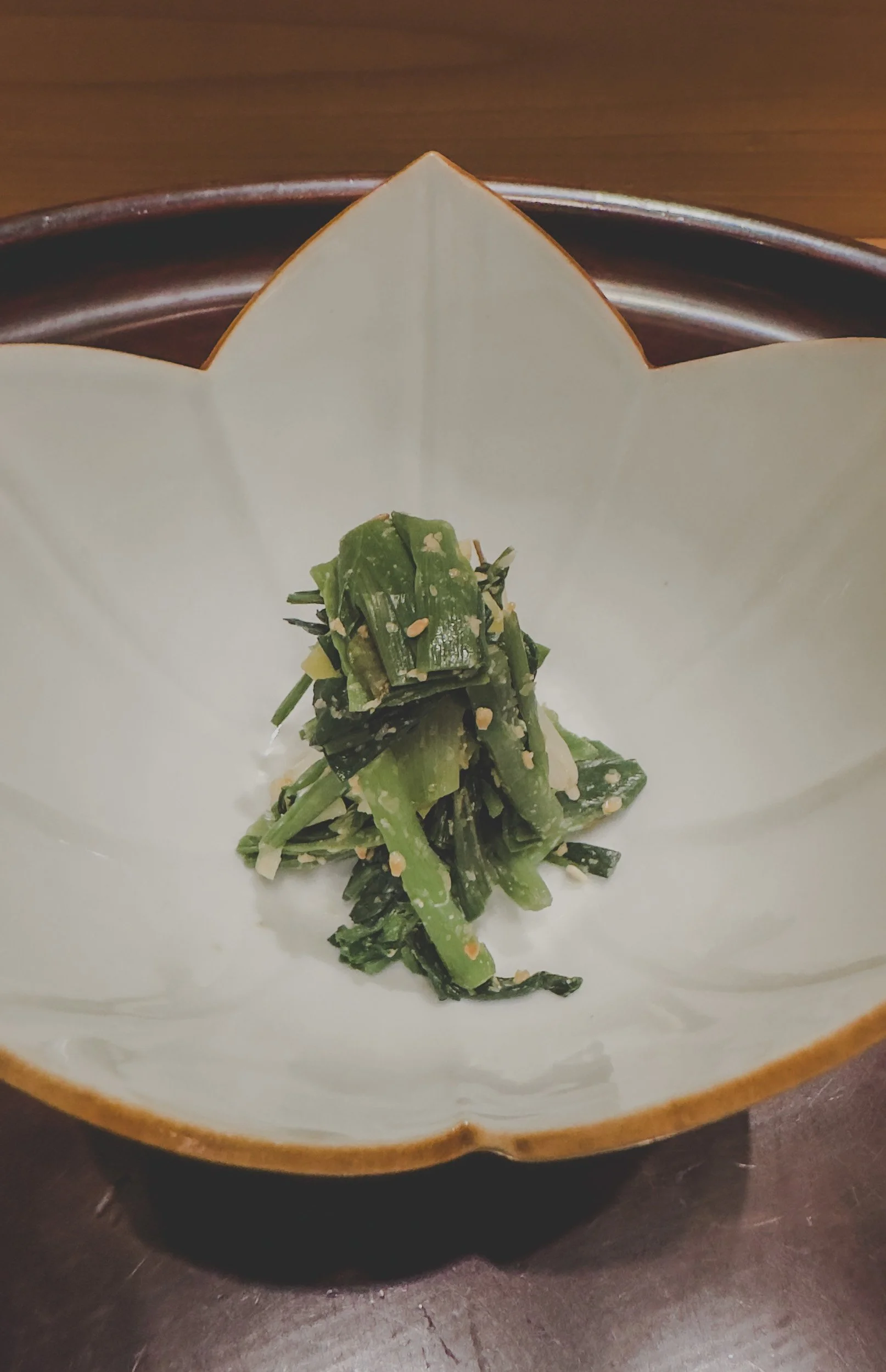 Functionally, the dish is designed to reset the palate and ground the diner in the current micro-season. The presentation, utilizing hand-crafted ceramic platters that mirror the textures of the mountains, ensures that the course feels like a physical piece of the Takagamine landscape. It is a dish that treats ingredients as a form of wellness, providing a sterile yet luxurious environment to explore the diversity of the Kyoto soil. This isn't just a starter; it’s a curated perspective on the bounty of the valley.