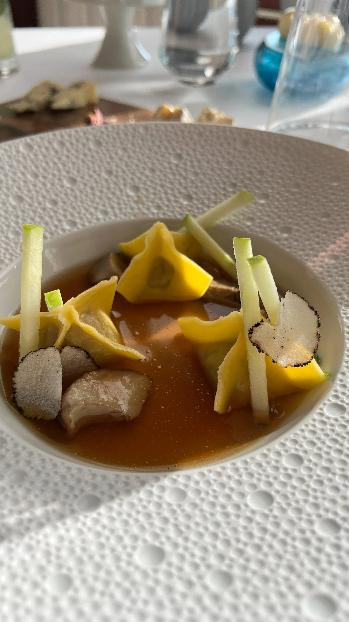 We selected the three‑course menu, and it proved to be the perfect choice. Each course arrived artfully composed and impeccably timed; the presentation was so beautiful it almost felt wrong to disturb it. Every bite was executed with precision — the sea bass was outstanding — and the house sourdough with butter was a standout in its own right. Service throughout the evening was attentive and gracious, striking the ideal balance of warmth and professionalism that made the meal feel effortlessly special.