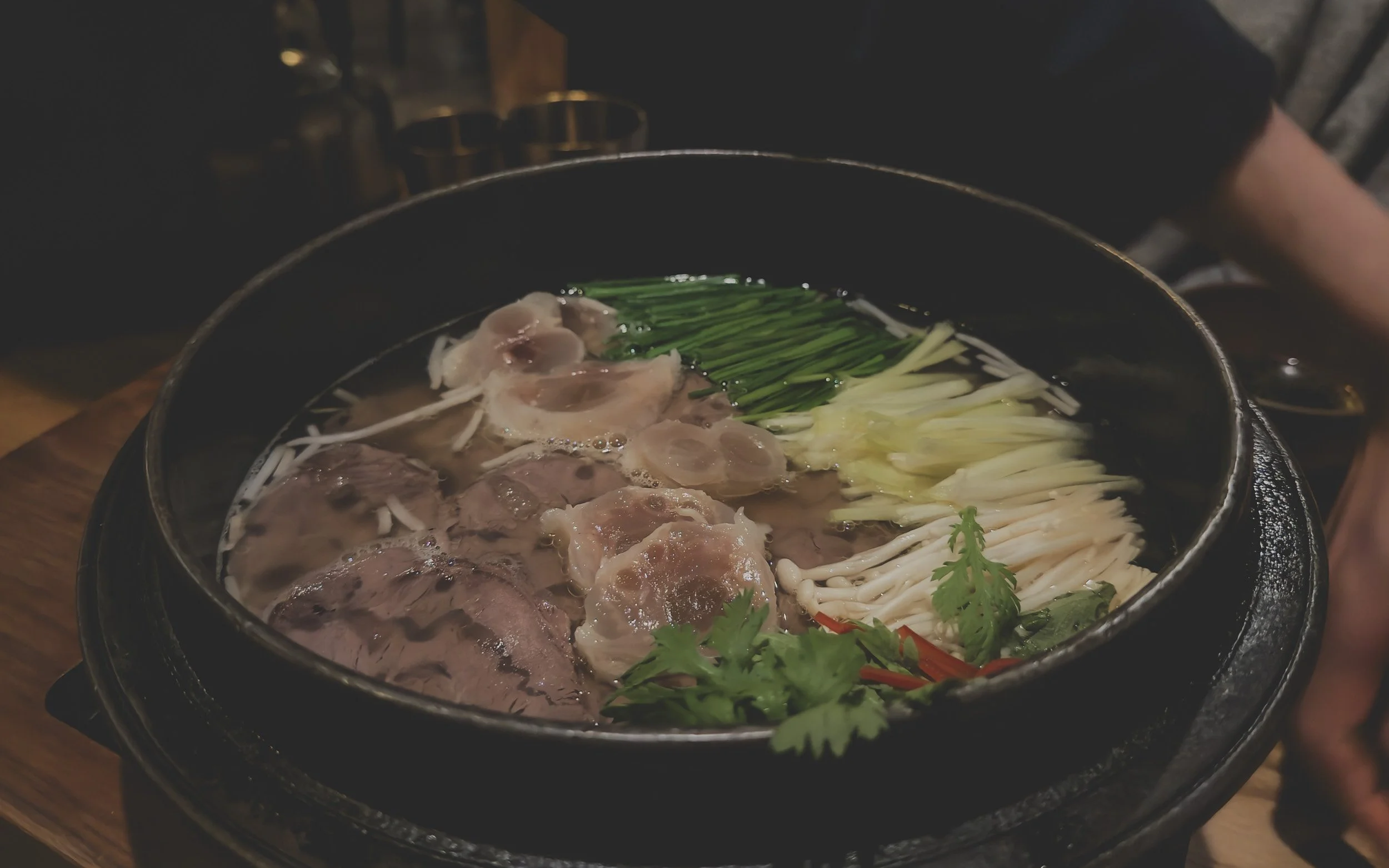 The service at San Ho Won is a standout feature, defined by a warm, friendly and proactively attentive approach that mirrors the precision of a fine-dining establishment while avoiding any hint of pretension. Staff are consistently observant and thoughtful, readily offering refills of the complimentary banchan and ssam when asked and engaging with guests in an easy, genuinely welcoming manner. As soon as you’re seated, a steaming pot of roasted barley tea lands on your table as if it’s been waiting all night for you to arrive. And over the course of the meal, a well-choreographed ensemble of staff in matching blue coats will bustle around the dining room with quiet efficiency. They'll deliver and then gently scoop out your personal portion of egg soufflé, and arrange baskets of ssam (leafy greens for wrapping) and banchan, like a refreshing chilled chili tofu or potato salad with minari. This considerate level of care guarantees that, despite the restaurant’s high profile and the persistent challenge of securing reservations, the entire experience remains approachable, relaxed and squarely focused on the comfort and satisfaction of the diner.