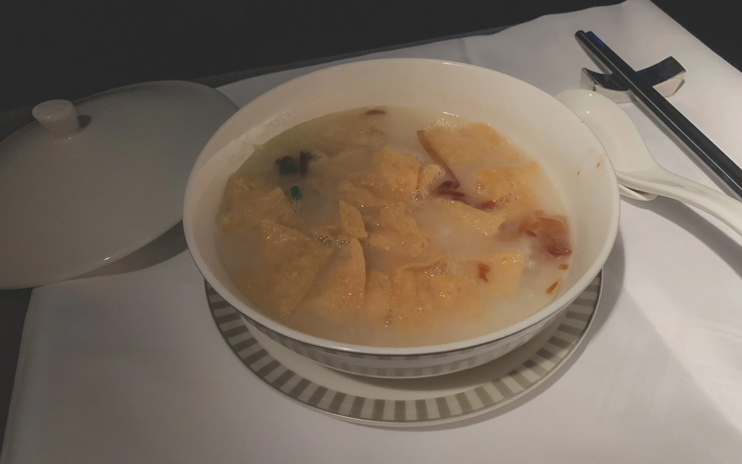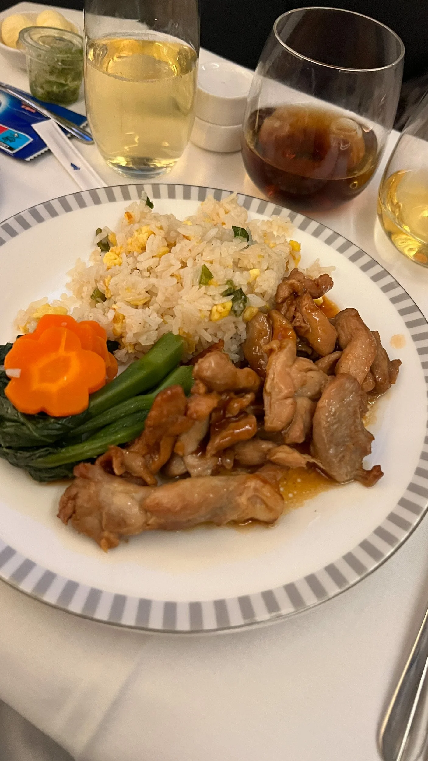 Dining on Singapore Airlines’s business class from Singapore to San Francisco is often a fantastic experience, often starting with the airline's signature Chicken Satay skewers served with a spicy peanut sauce as a pre-meal canapé. The service sequence typically includes a full dinner shortly after takeoff, a mid-flight "delectables" snack menu for those crossing the Pacific, and a hearty breakfast served roughly two to three hours before landing in San Francisco.