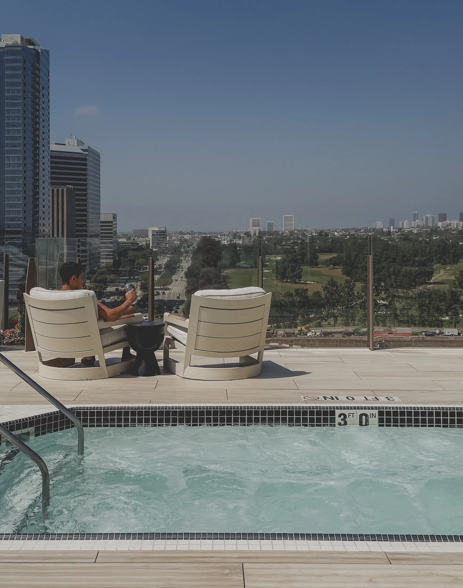 Moving from the serene spa to the vibrant rooftop pool was like stepping into a glamorous Hollywood dream. The panoramic views of Beverly Hills and beyond were simply breathtaking – the perfect backdrop for a leisurely swim or simply lounging in the sun. The pool hours were generous, allowing for a refreshing dip at almost any time of day. The staff up there were incredibly friendly and attentive, always ready with a smile and eager to ensure every guest was comfortable. The pool experience itself was divine; the water was the perfect temperature, and there was ample space to swim and relax. They also offered lovely amenities like plush towels, chilled water, and sunscreen. And let's not forget the chic cabanas that lined the pool deck, offering a private and luxurious retreat for those seeking an extra touch of indulgence.