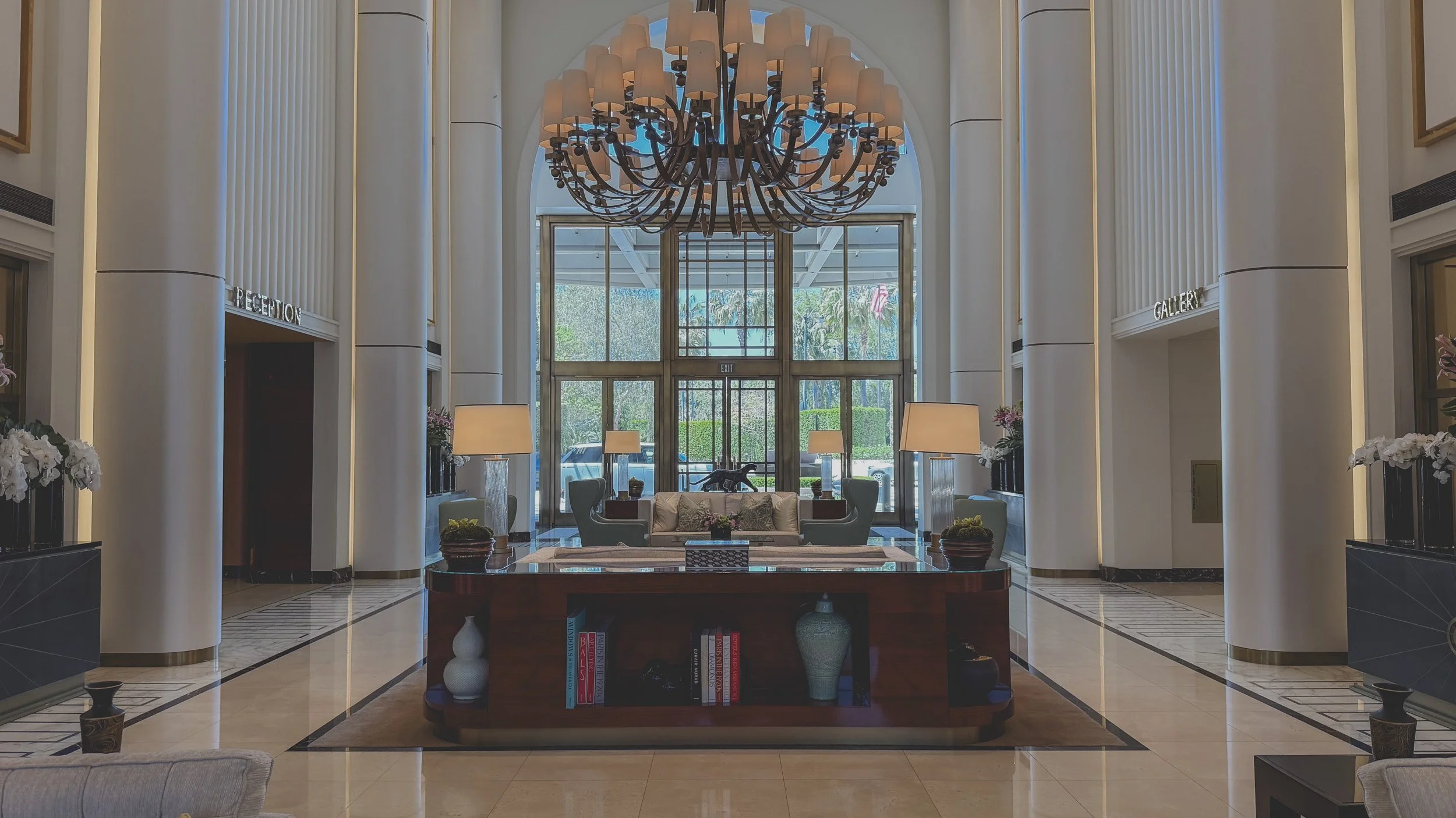 The sheer scale of the lobby is awe-inspiring, with high ceilings that create a sense of grandeur and space. Floor-to-ceiling windows allow natural light to flood the area, illuminating the intricate details of the architectural design. Each component, from the marble flooring to the meticulously curated art pieces, speaks to the quality and craftsmanship that this hotel is renowned for. The rich color palette and lavish furnishings, adorned with gold accents and sumptuous textiles, evoke an undeniable feeling of indulgence.